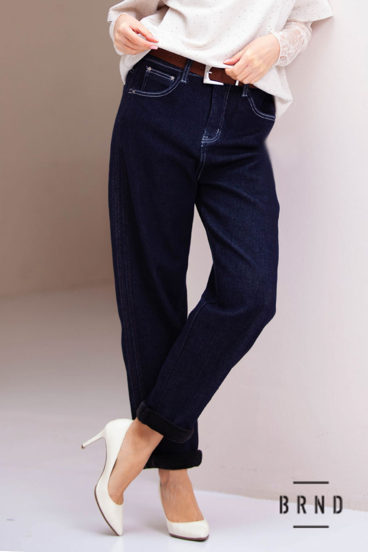 Джинси завужені з паском, утеплені, посадка висока (Other Brand)