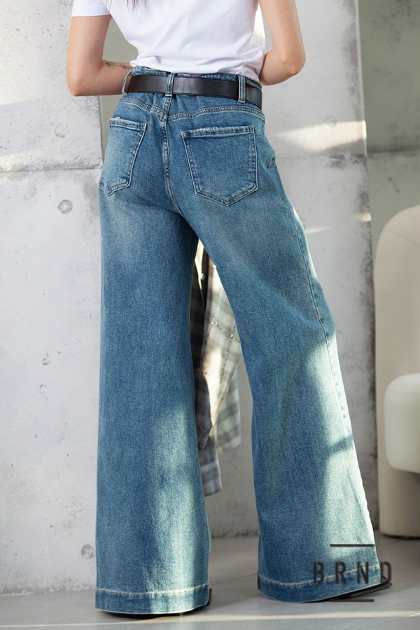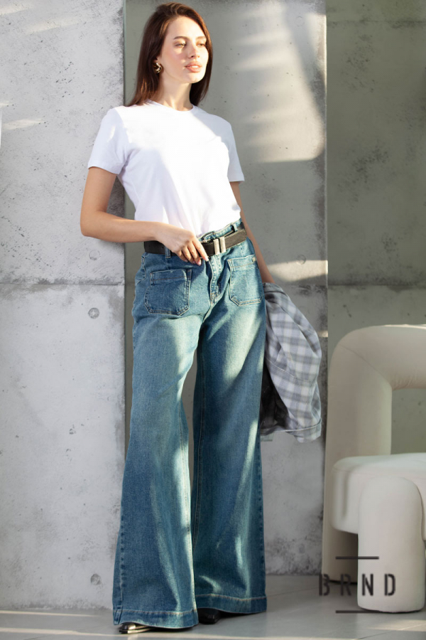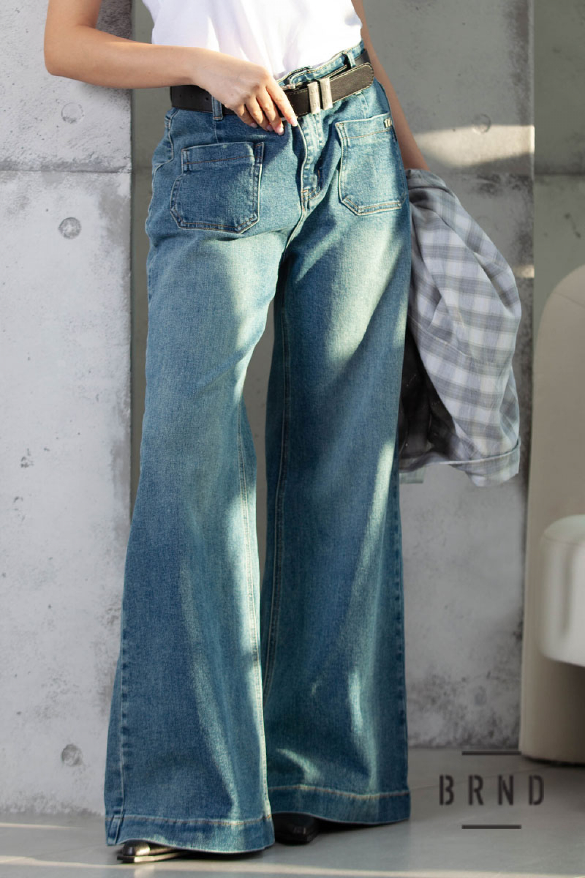 Джинси клешені з паском та накладними кишенями, посадка висока (Other Brand)