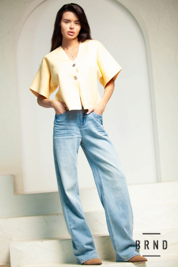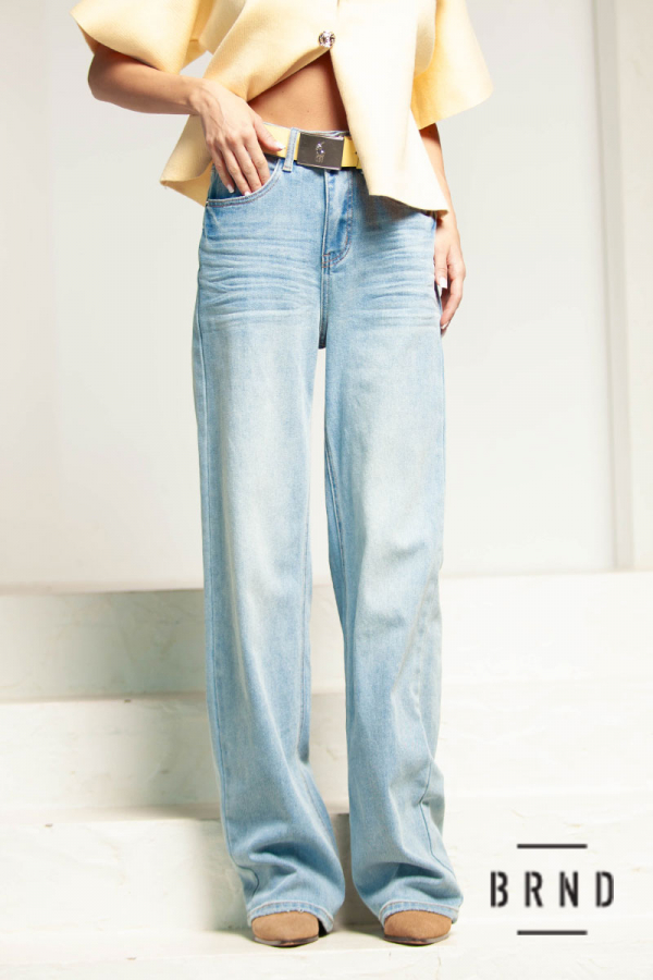 Джинси прямі широкі з паском, посадка висока, пасок-гумова стрічка (Other Brand)