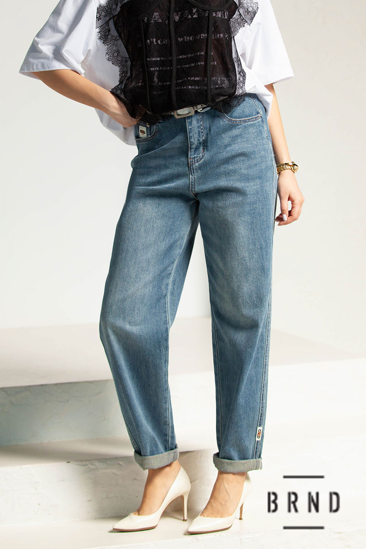 Джинси завужені з паском, посадка висока (Other Brand)