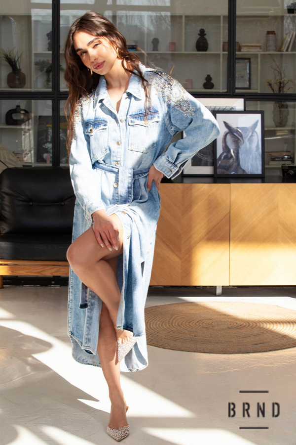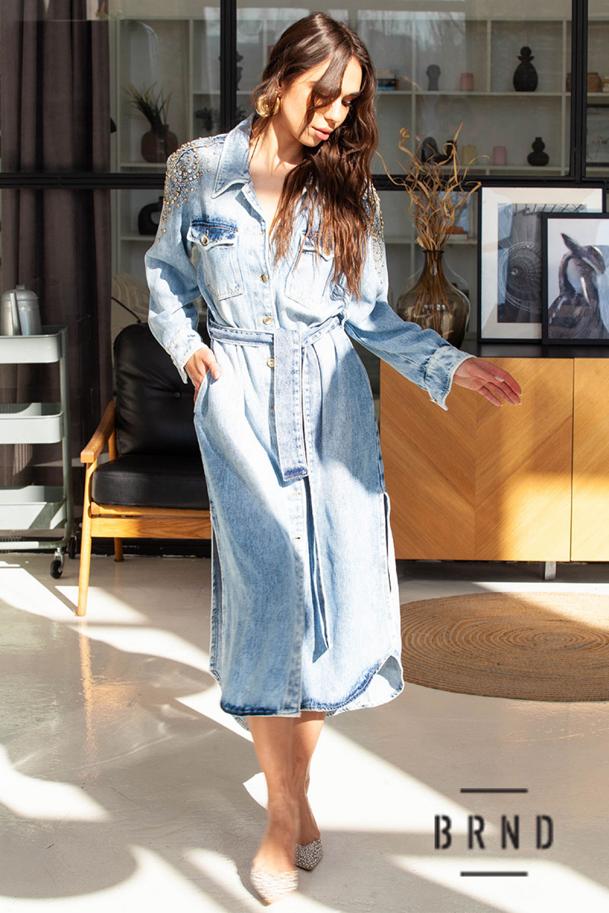 Сукня із деніму, з паском та кишенями, декор-каміння (Other Brand)