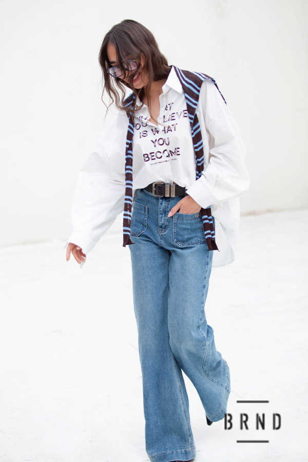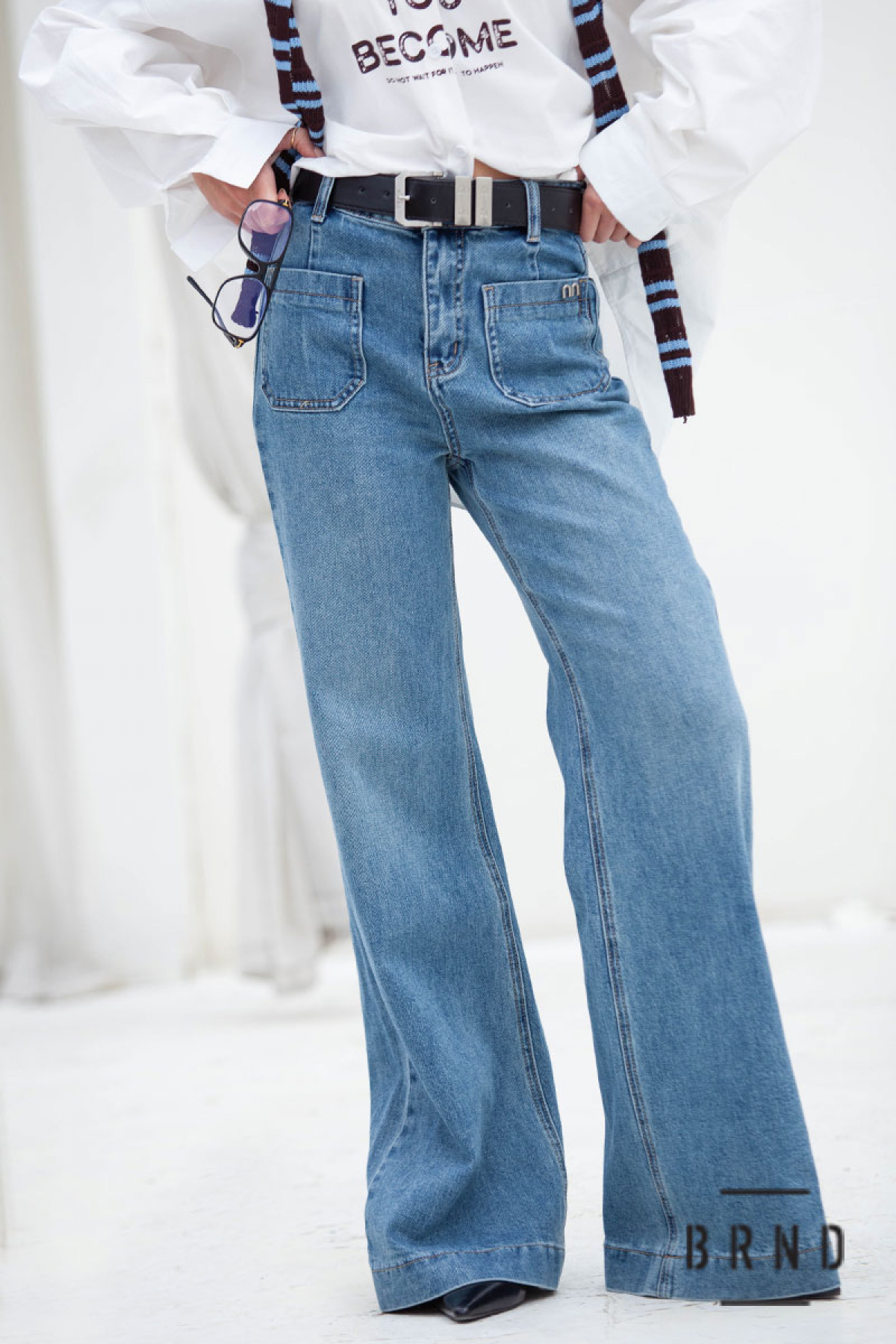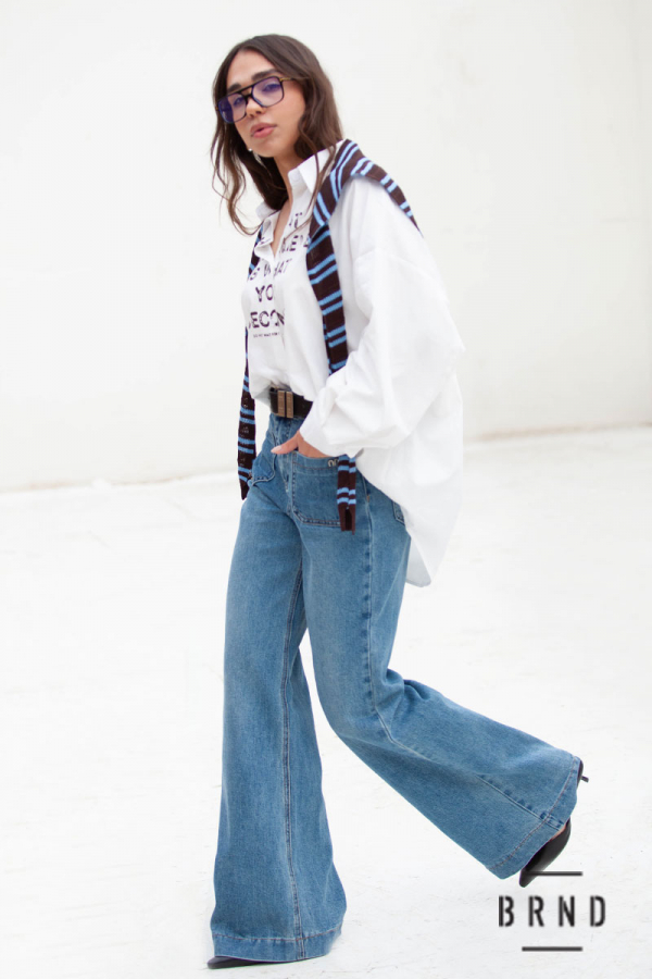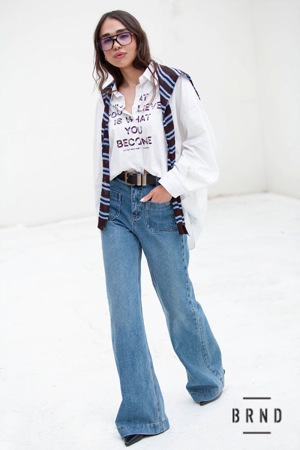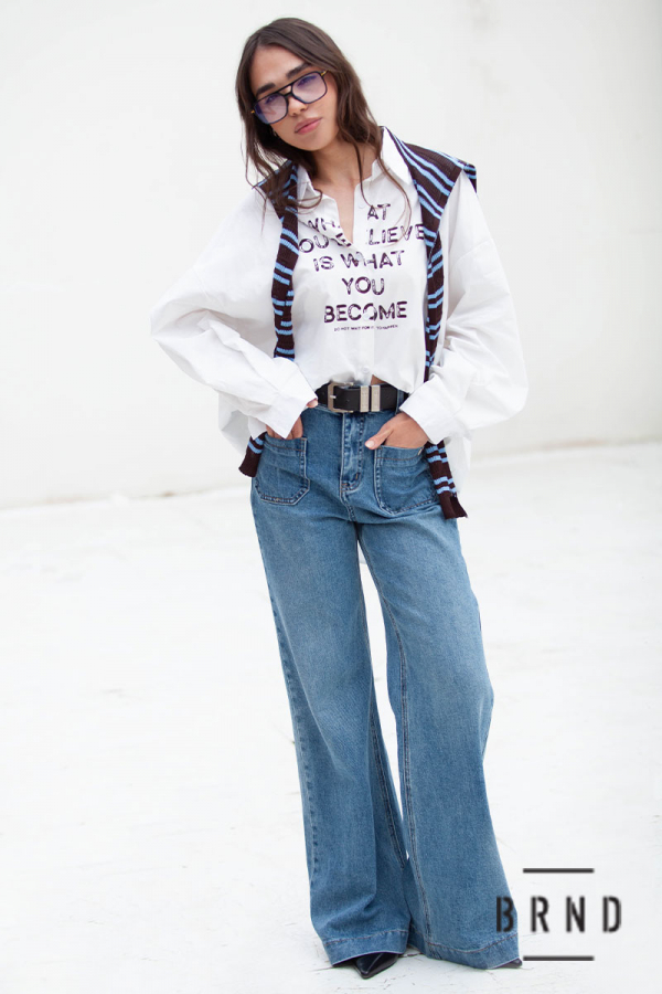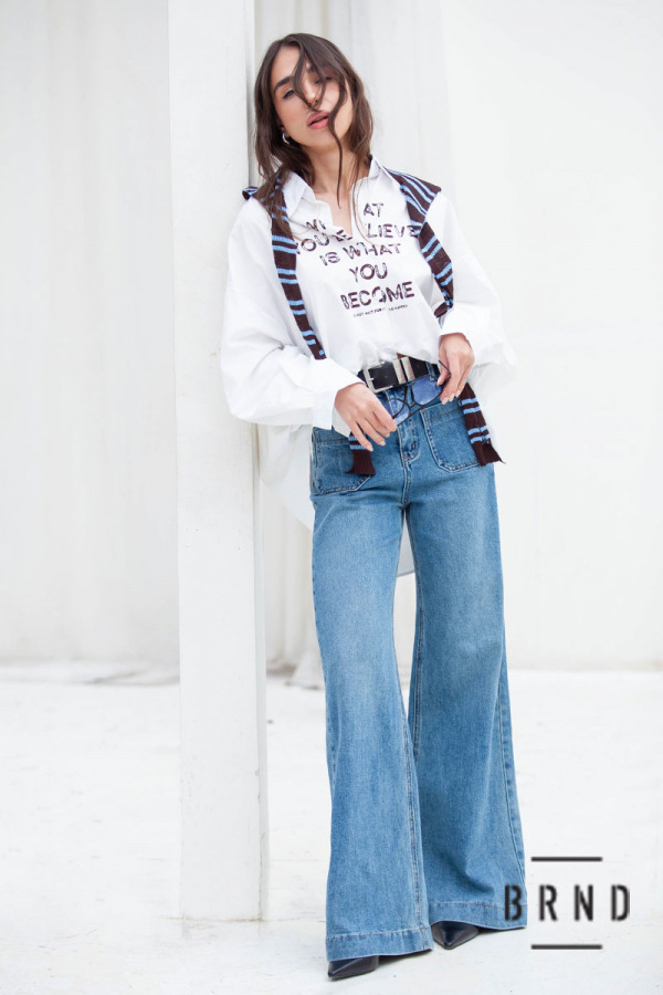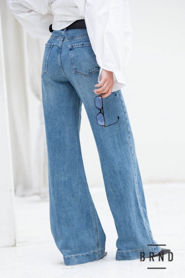 Джинси з паском та накладними кишенями попереду, клешені, посадка висока (Other Brand)