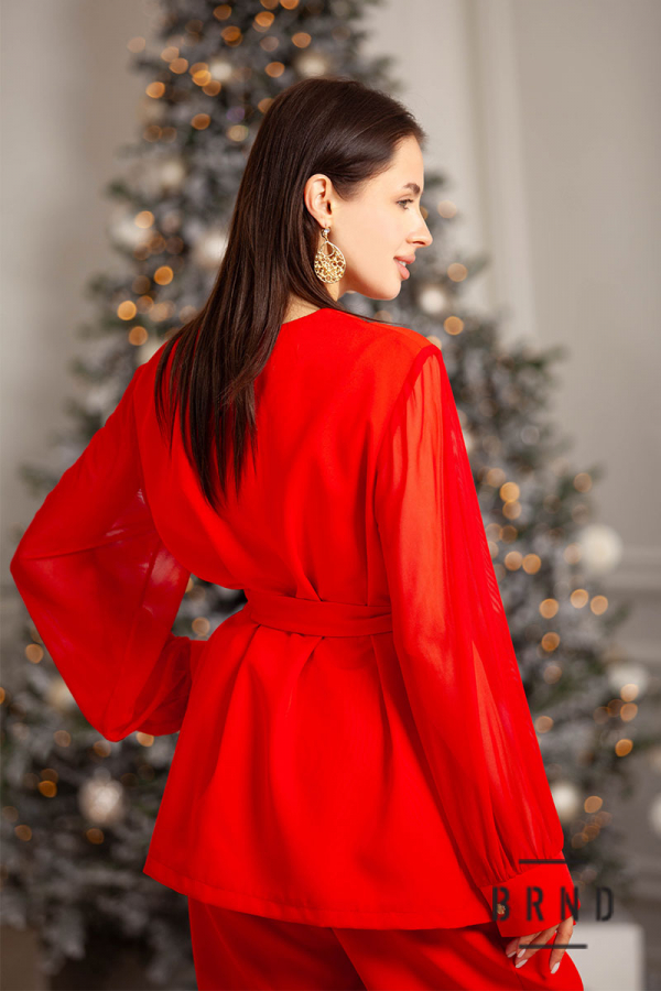 Костюм: жакет з паском, приталеного крою, рукав-буф; штани завужені, пасок комбінований з гумовою стрічкою, посадка висока (Roberto Cavalli)