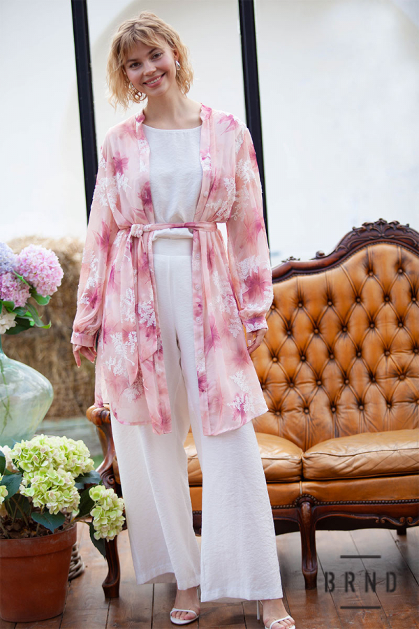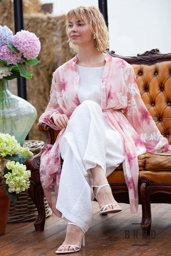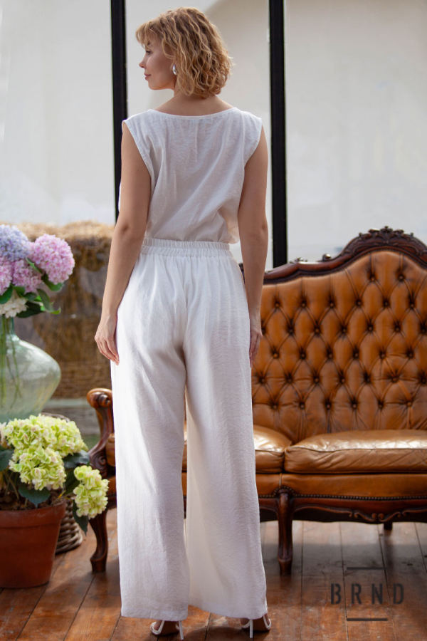 Костюм-трійка з паском: туніка прямого крою, декор-вишивка; майка вільного крою; штани з косими кишенями, прямі, широкі (Roberto Cavalli)