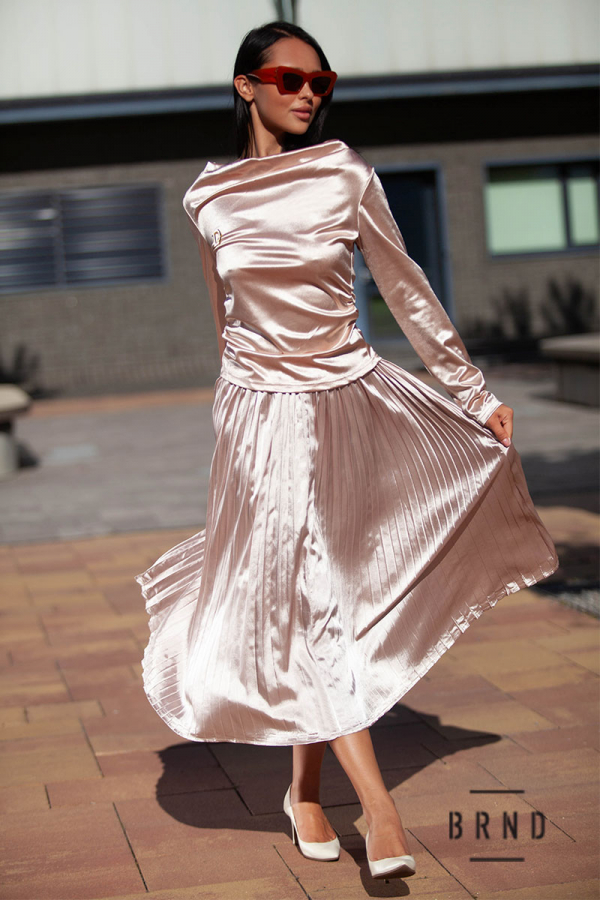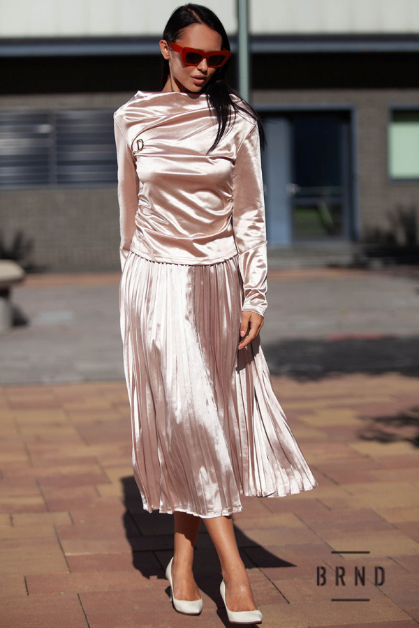 Костюм: лонг приталенного кроя; юбка А-образная, плиссе, пояс-лента (AniNadin)