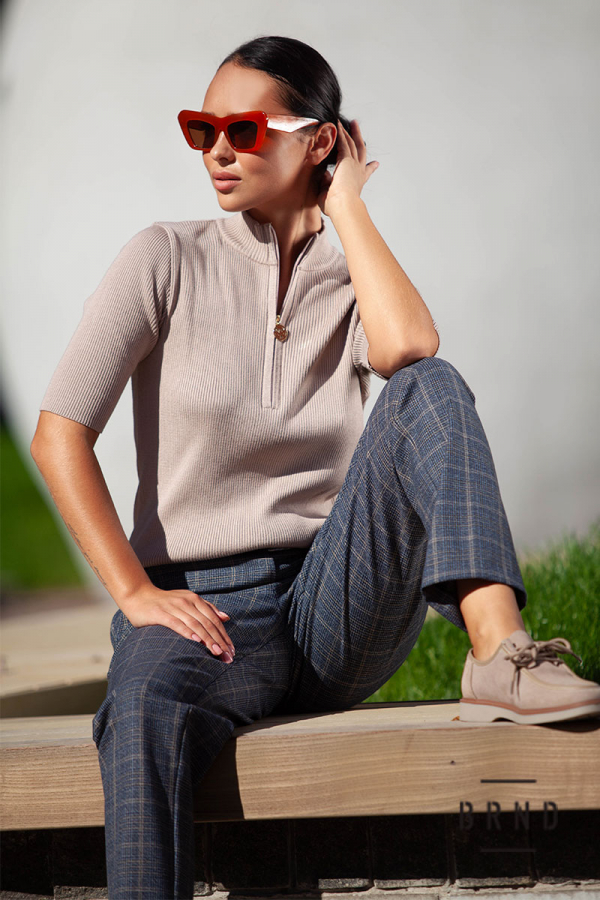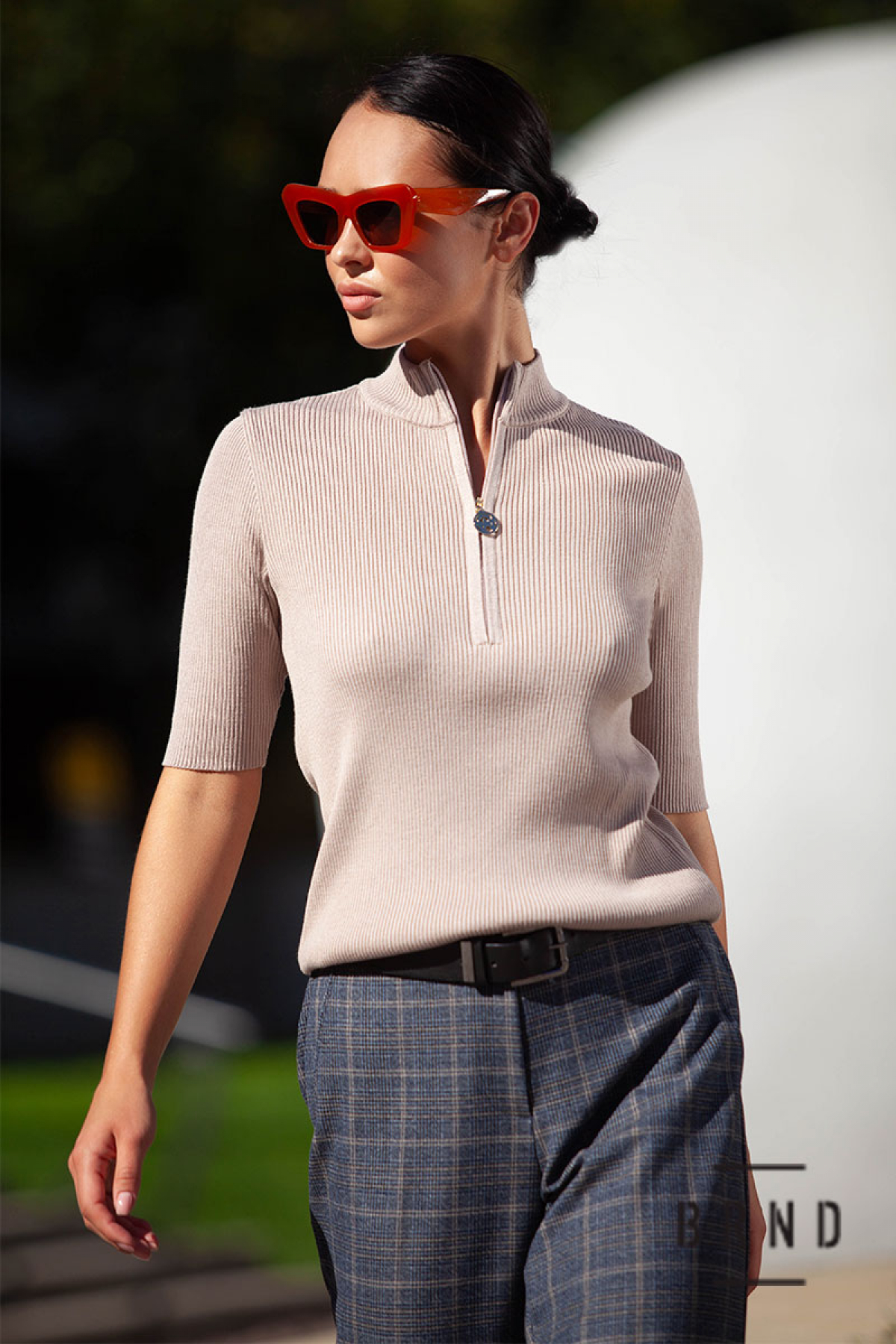 Кофта трикотажная в рубчике, прямого кроя, воротник-молния (AniNadin)