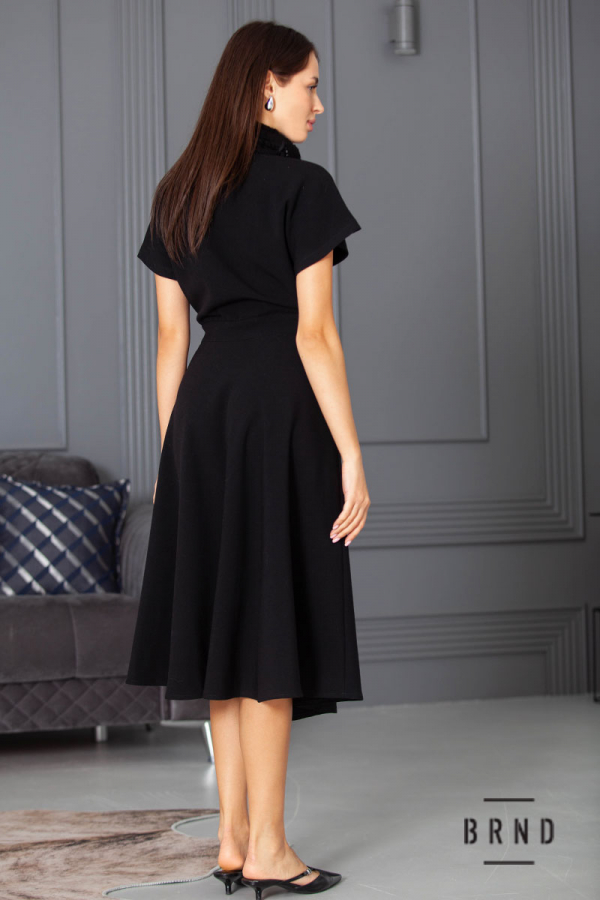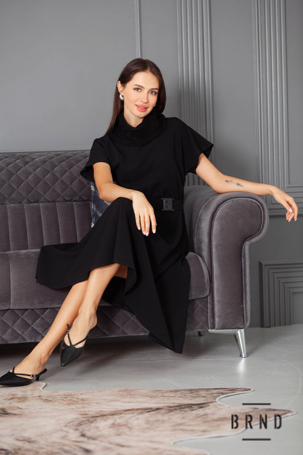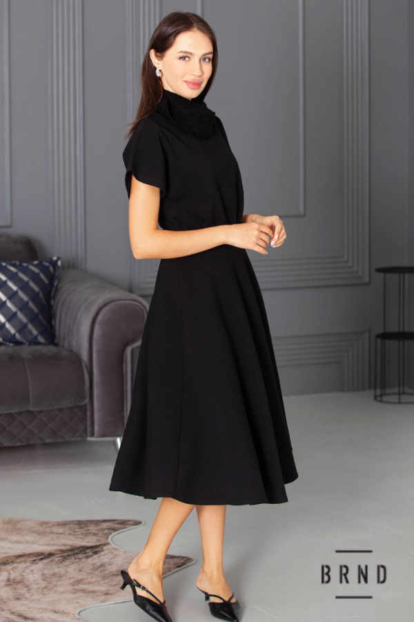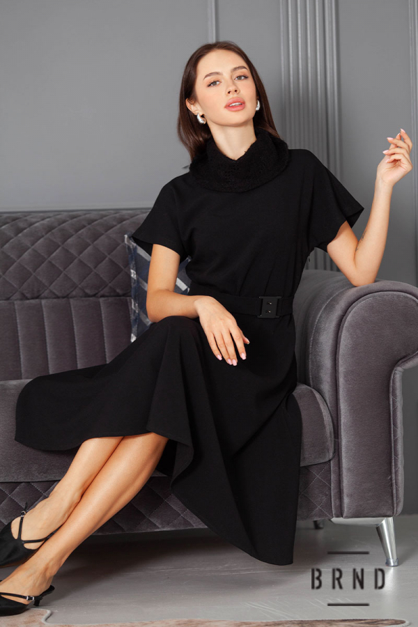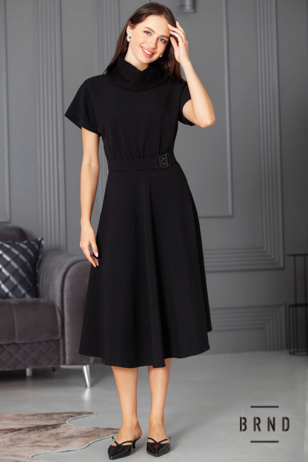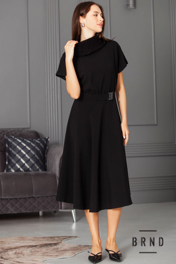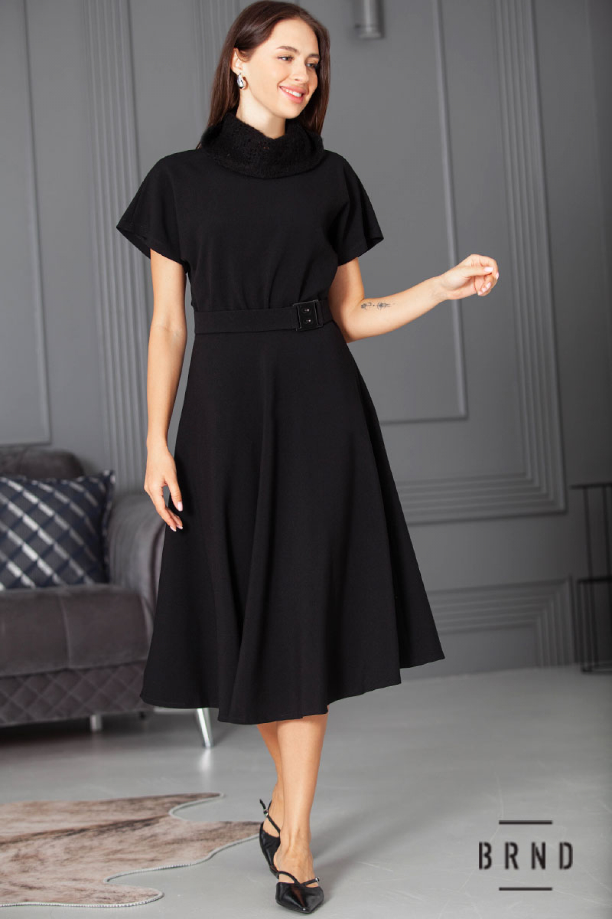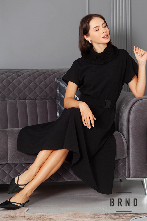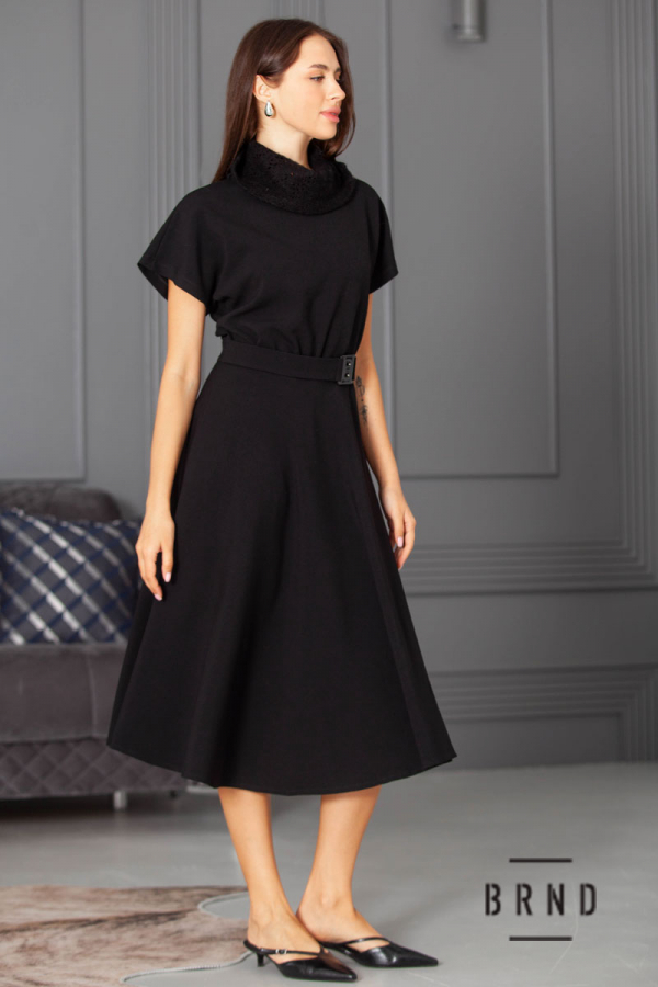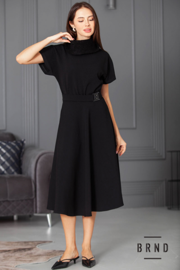 Платье с отрезной линией талии, поясом и ажурным вязаным воротом (AniNadin)