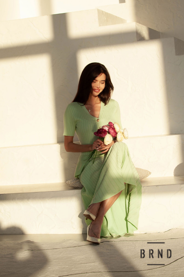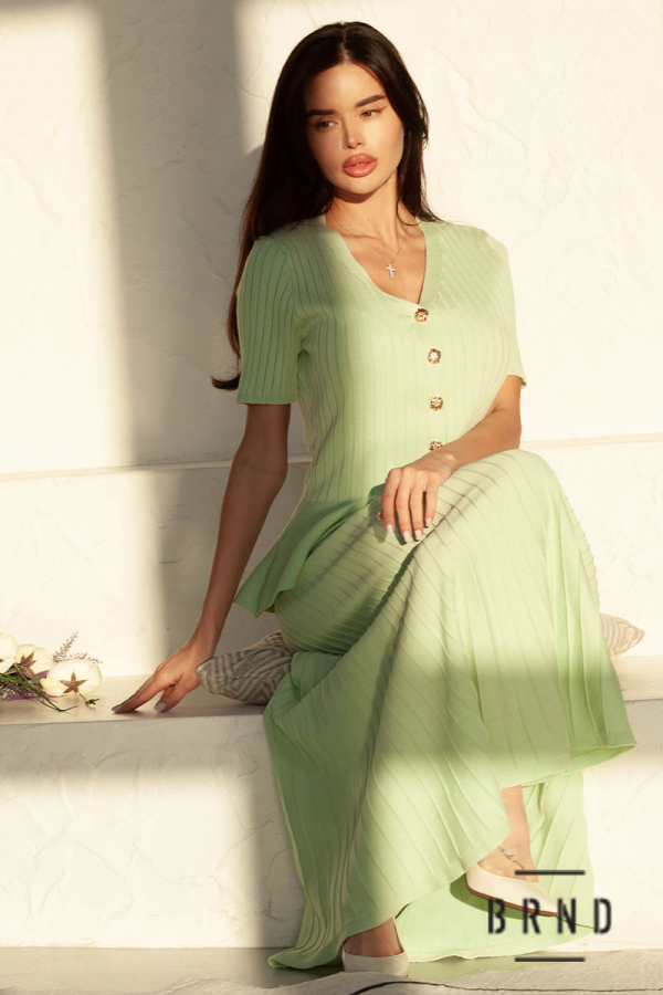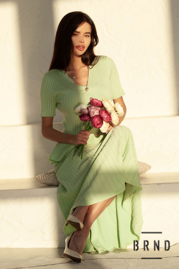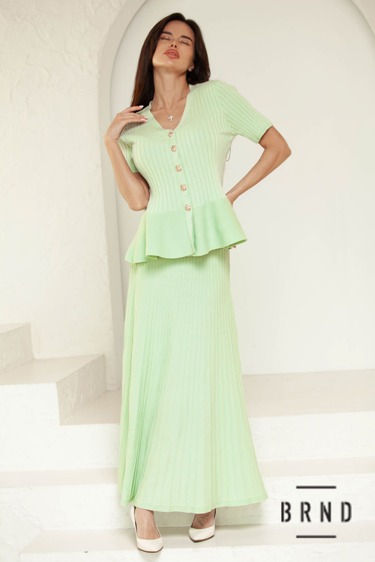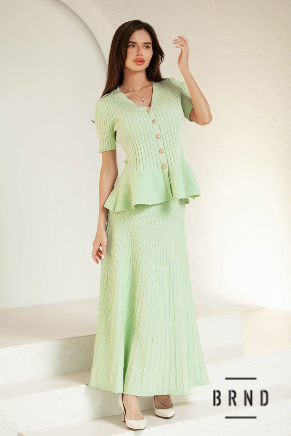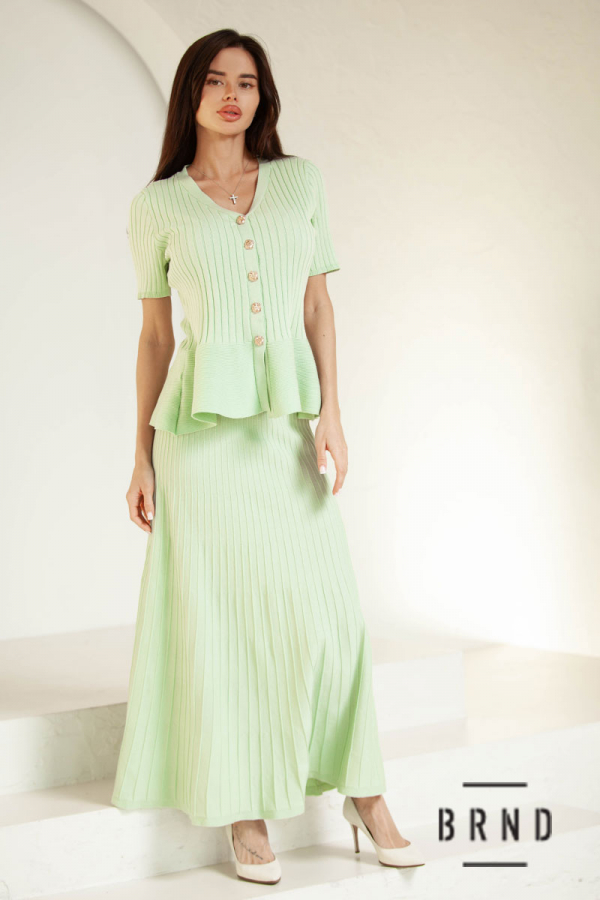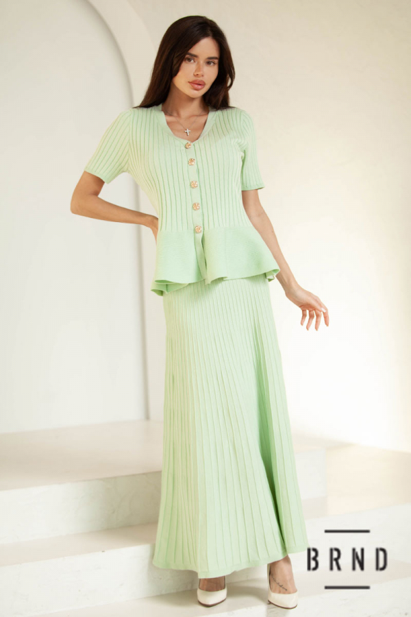 Костюм трикотажный: кофта приталенного кроя, на кнопках, вырез V-образный, рукава короткие; юбка А-образного кроя (AniNadin)