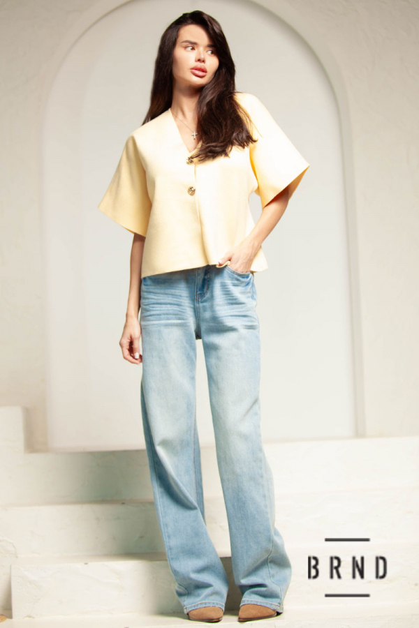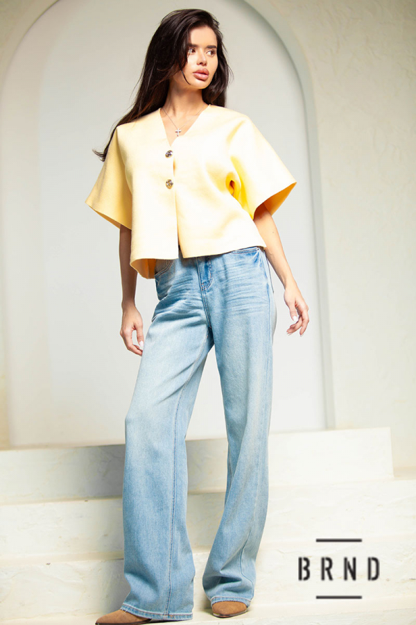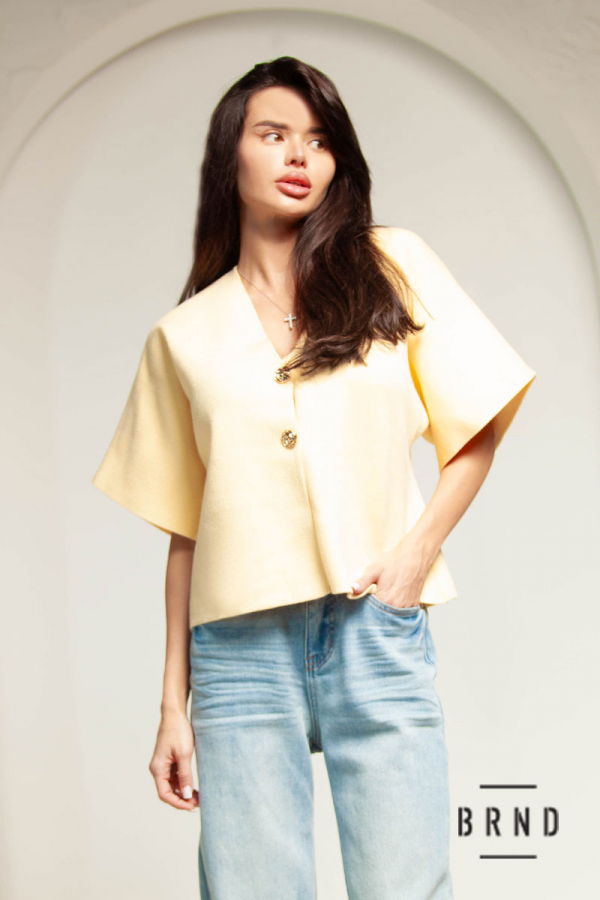 Кофта трикотажная на пуговицах, рукава короткие, крой свободный, вырез V-образный (AniNadin)