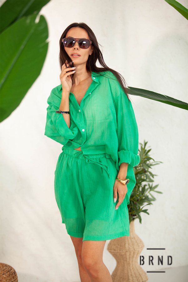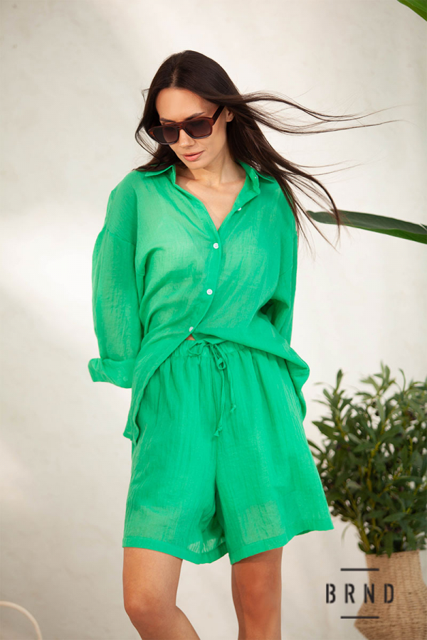 Костюм из жатой ткани: рубашка свободного кроя, шорты (AniNadin)