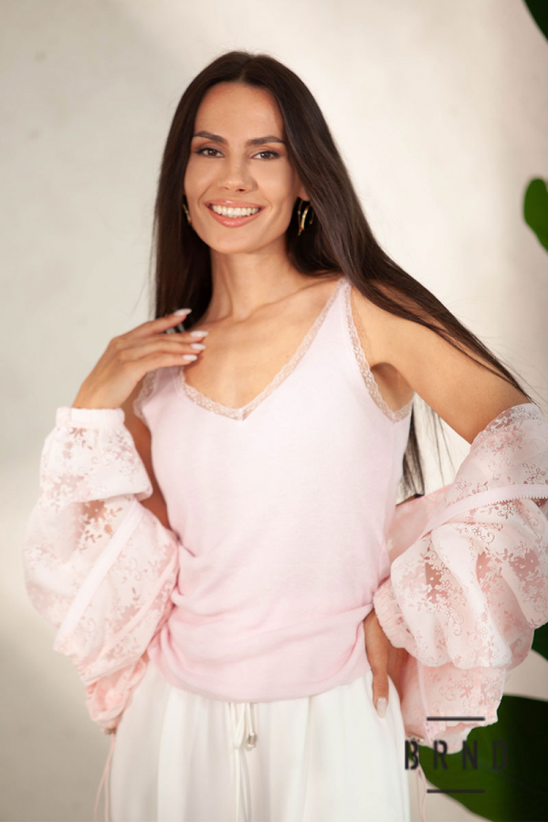 Майка трикотажная, прямого кроя, декор-кружево (AniNadin)