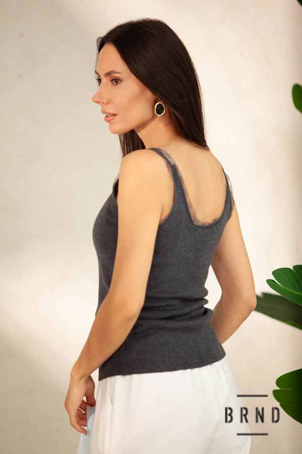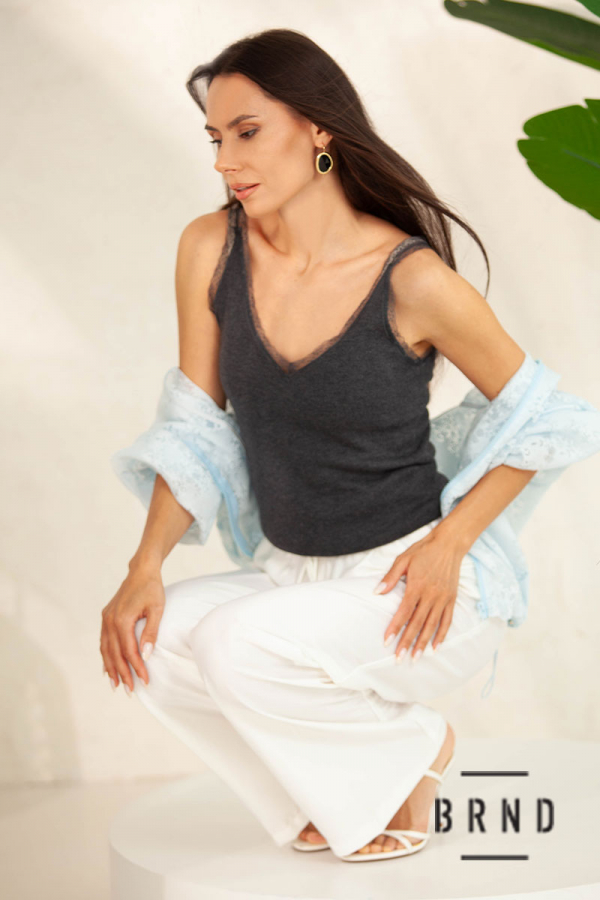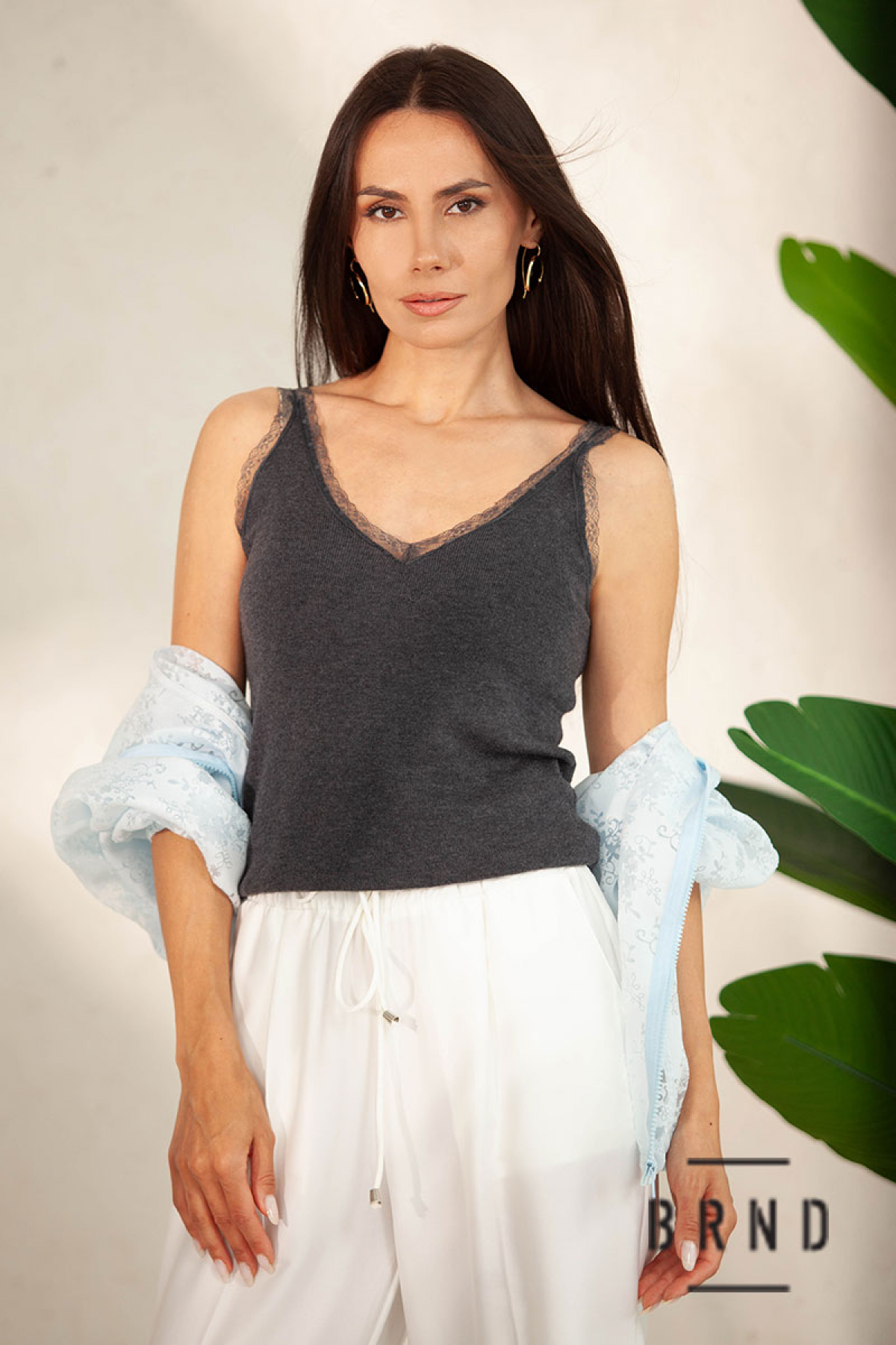 Майка трикотажная, прямого кроя, декор-кружево (AniNadin)