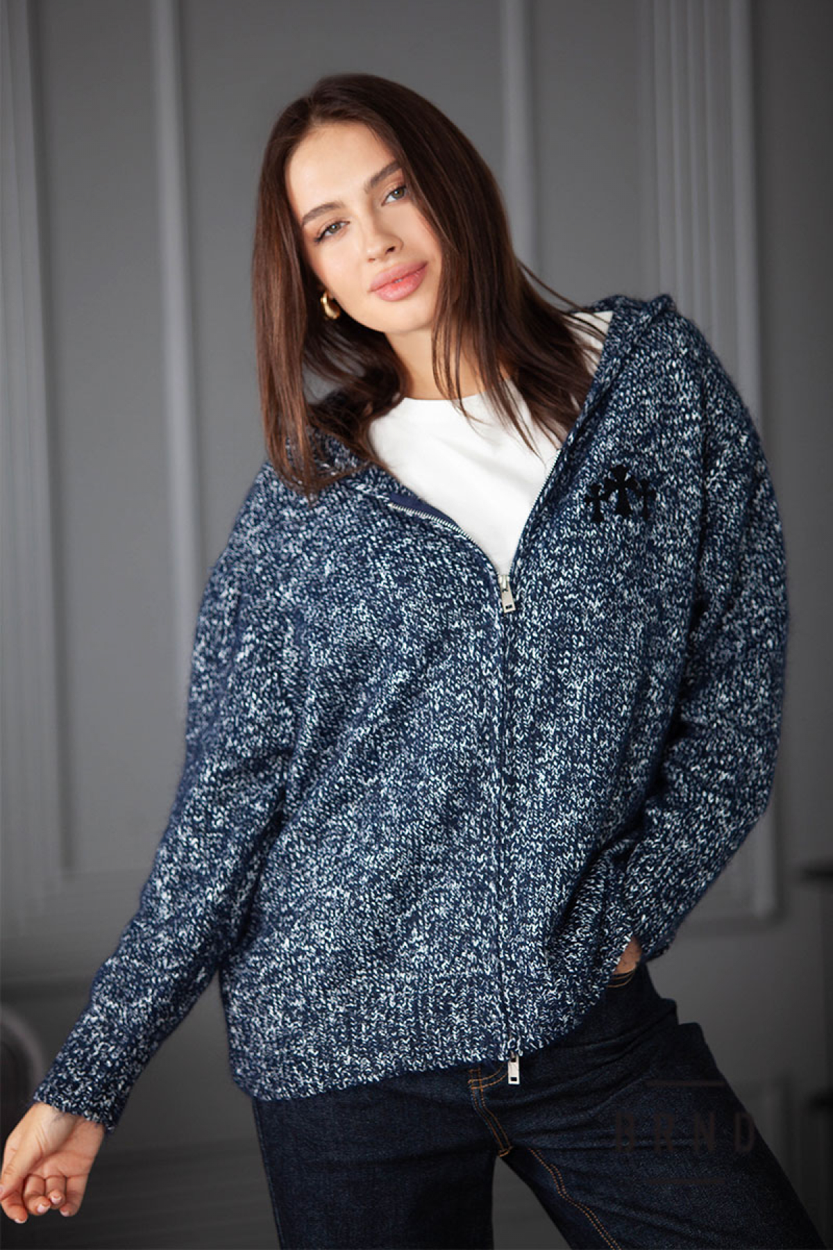 Кофта свободного кроя на молнии, с капюшоном (Armani Jeans)