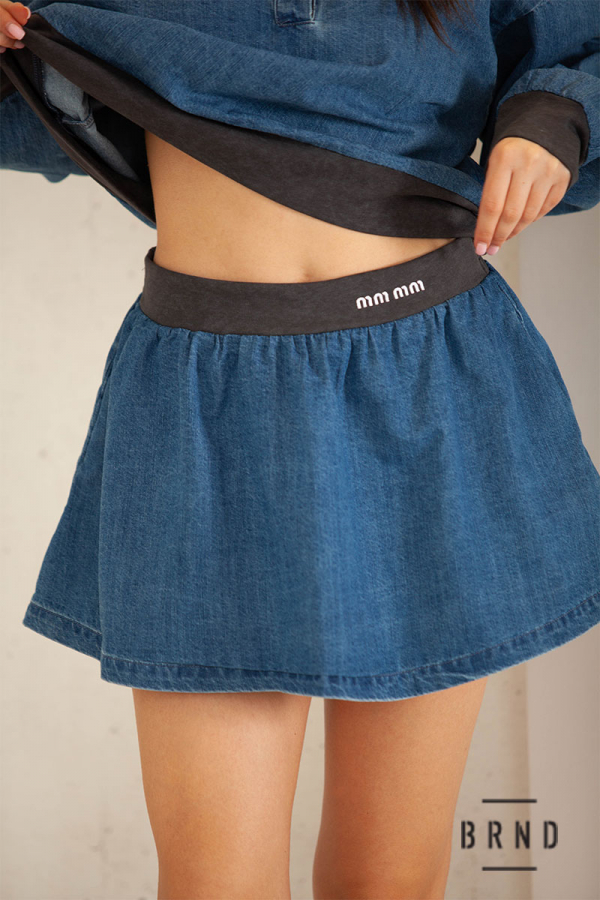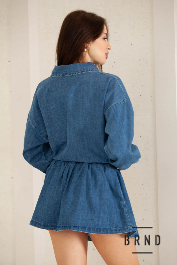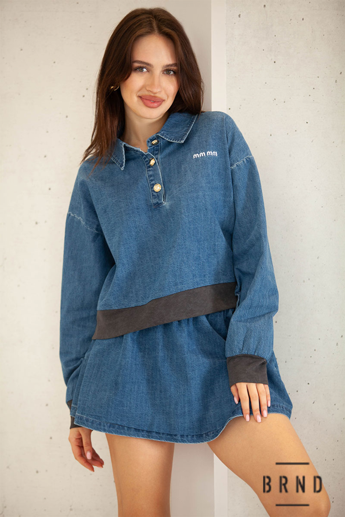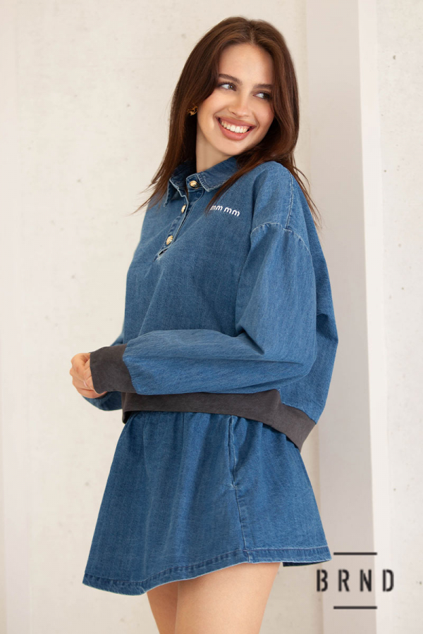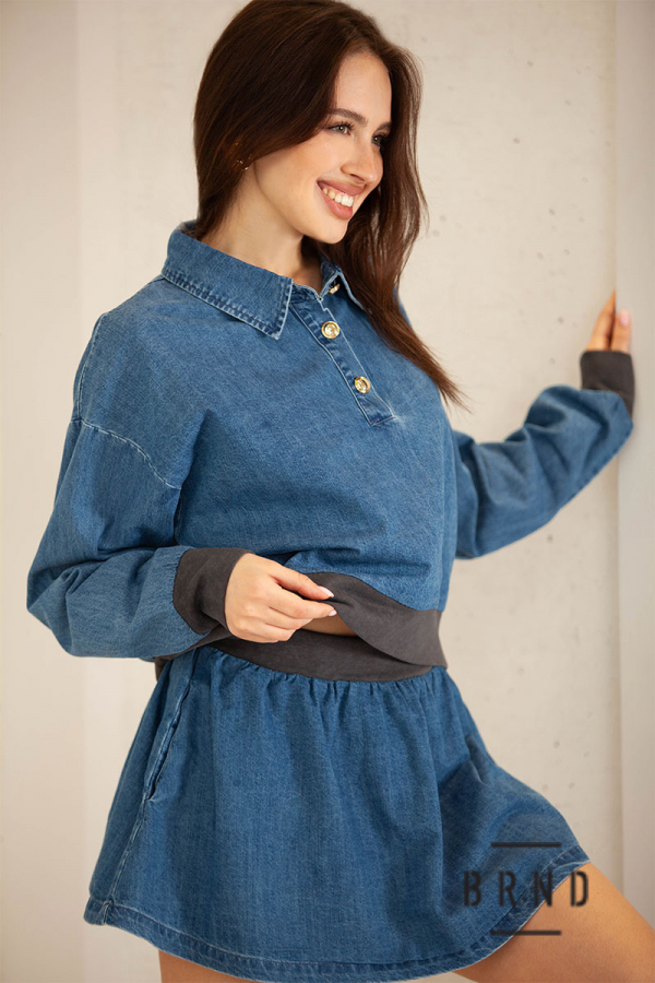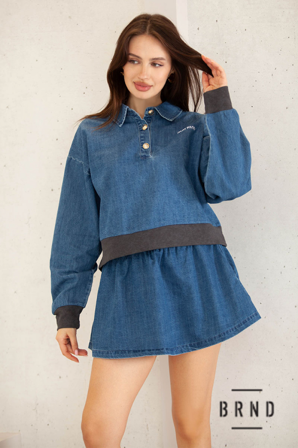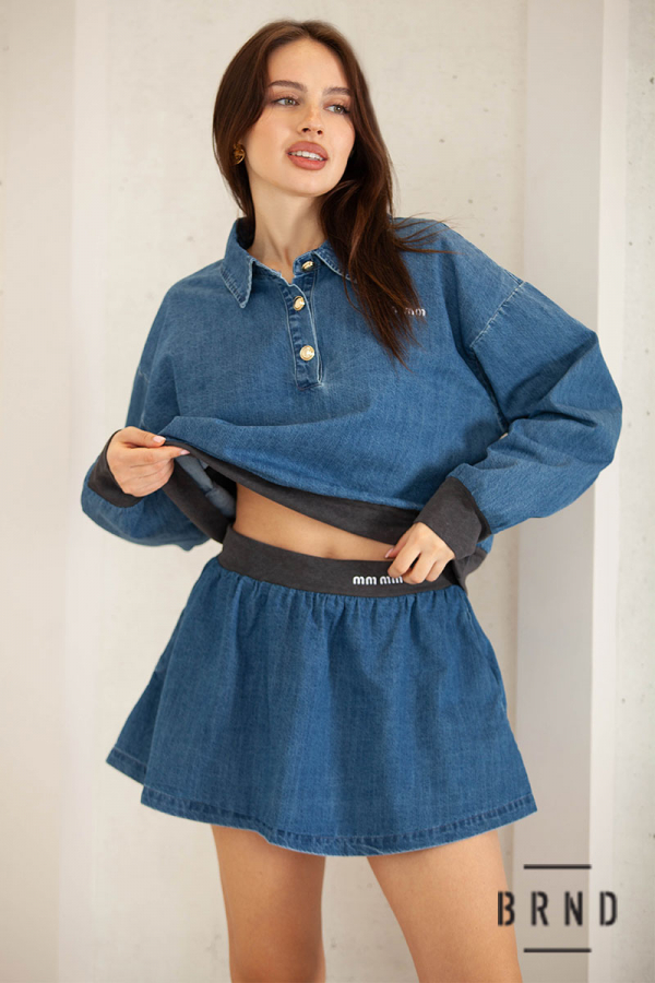 Костюм из денима комбинированный с трикотажем: кофта свободного кроя; юбка короткая (BRENDA)