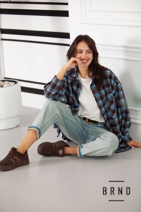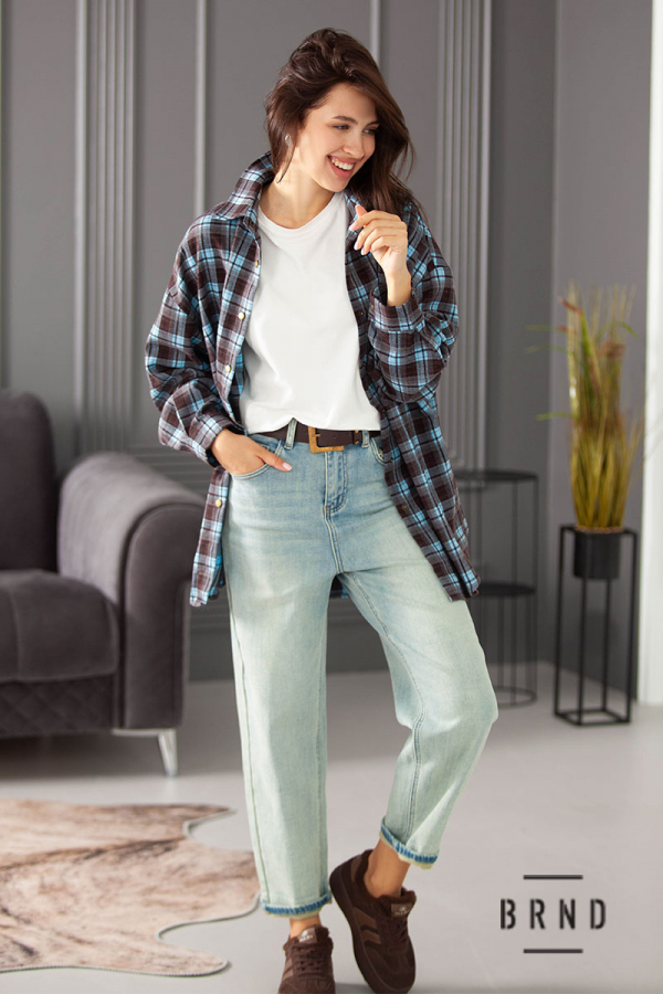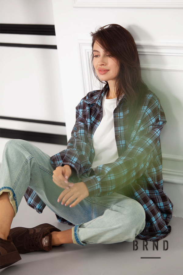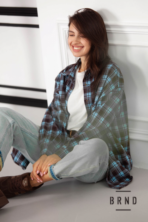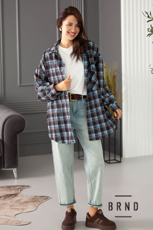 Рубашка клетчатая прямого кроя на кнопках, декор-вышивка (Burberry)