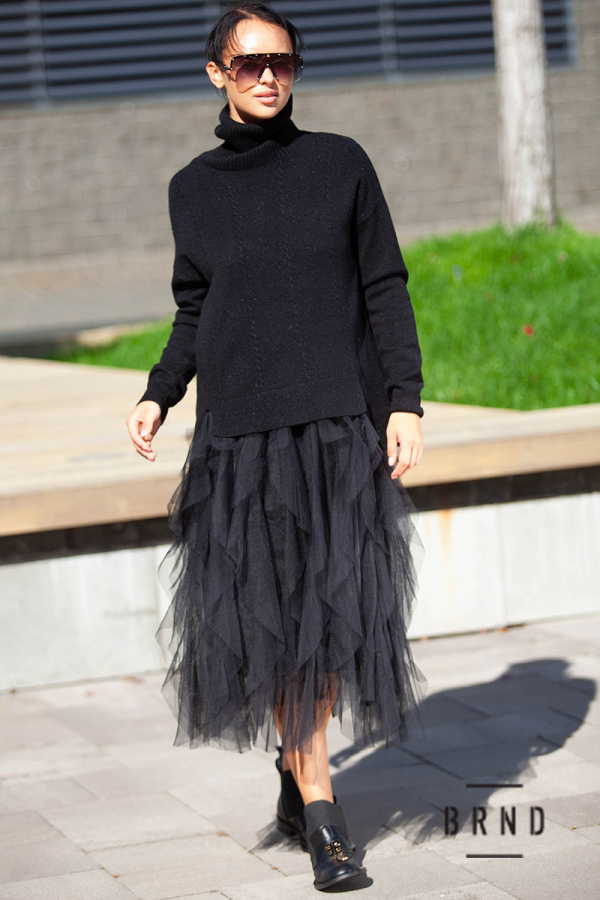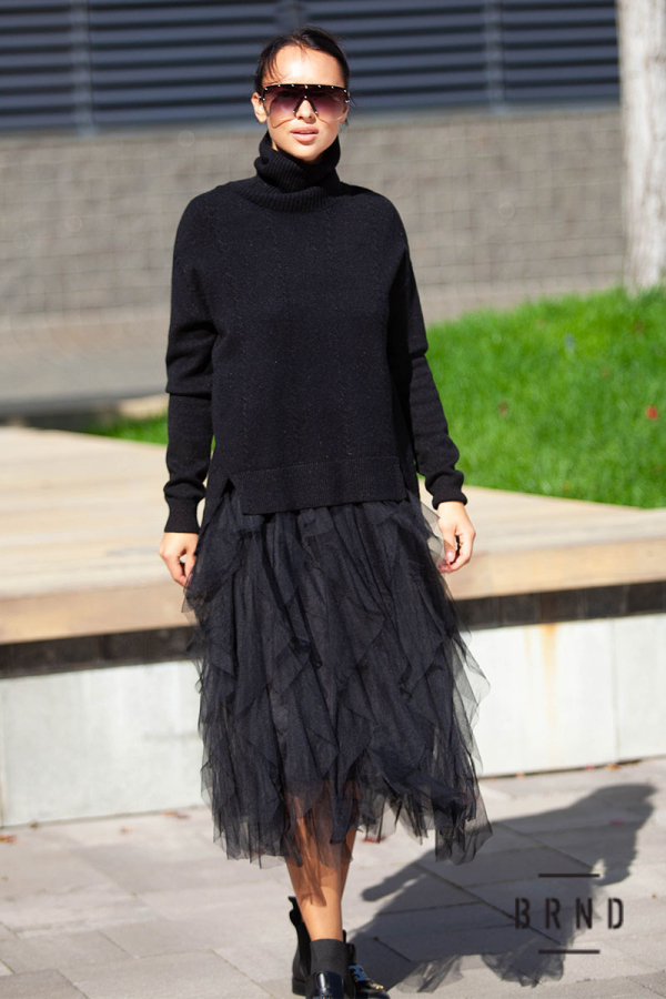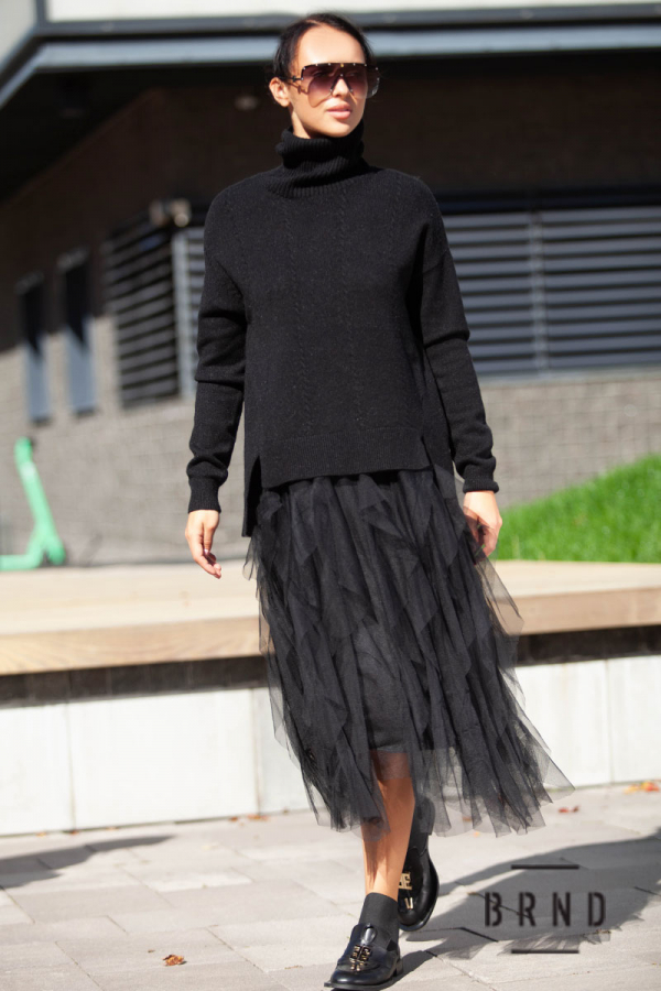 Костюм: свитер свободного кроя; платье А-образного кроя, подол-сетка (Chloe)