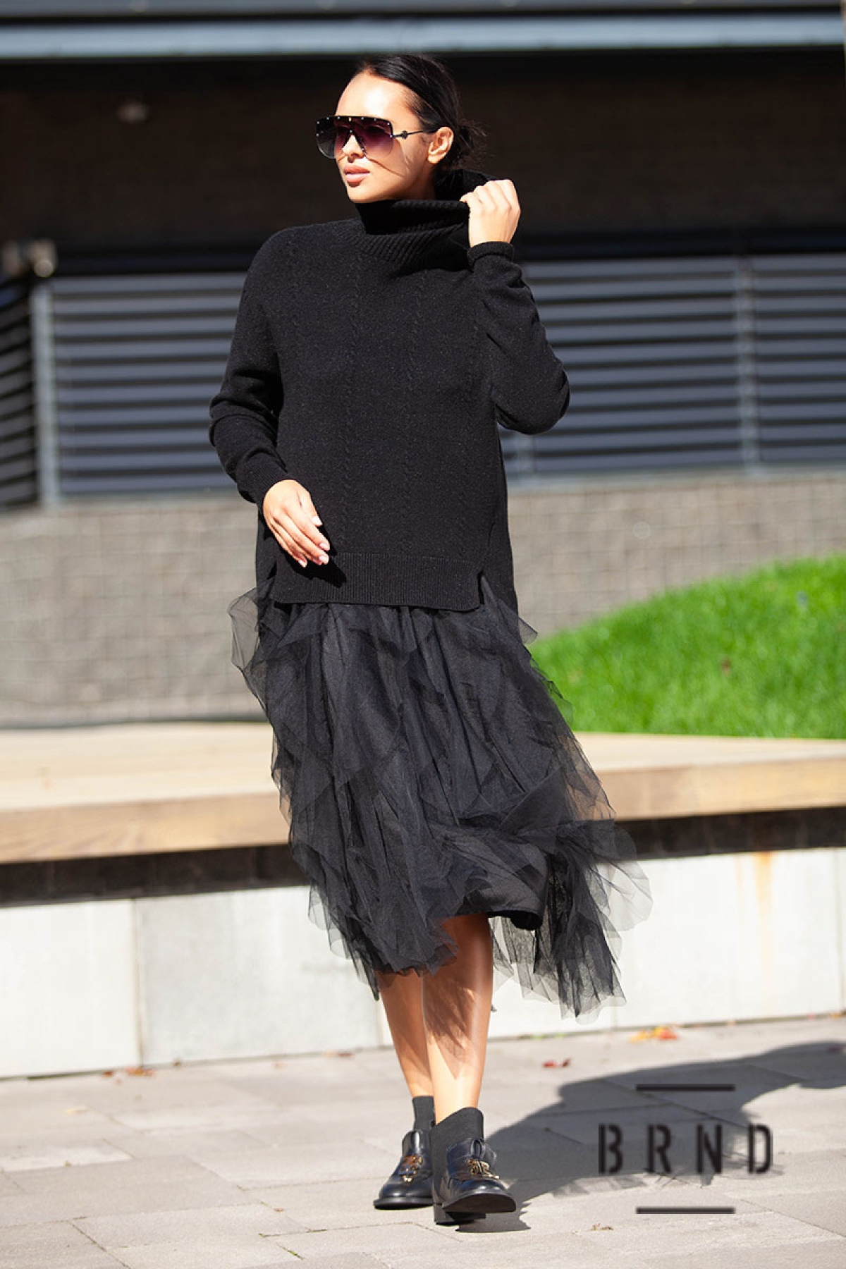 Состав: свитер-шерсть 60%, кашемир 20%, полиэстер 20%; платье-вискоза 100%