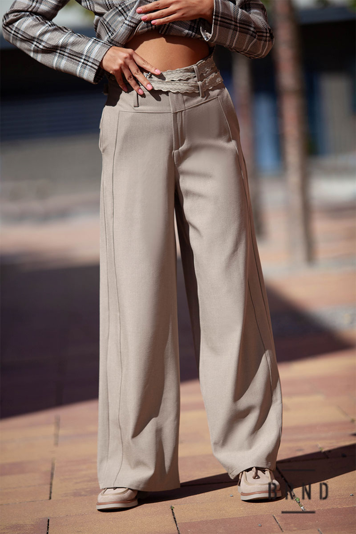 Брюки с поясом, прямые, широкие, посадка высокая (Chloe)