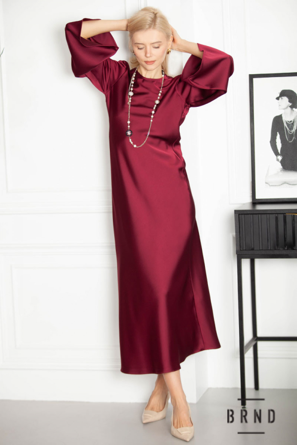 Платье с открытой спиной, приталенного кроя, рукава расклешенные (Chloe)