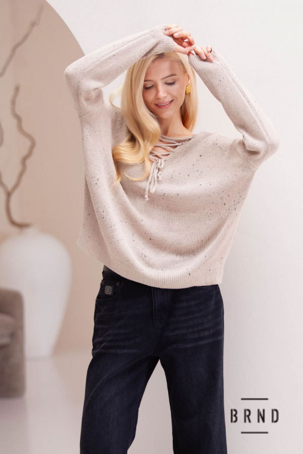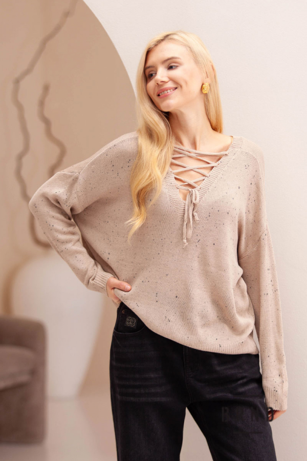 Кофта трикотажная свободного кроя, вырез V-образный со шнуровкой (Chloe)