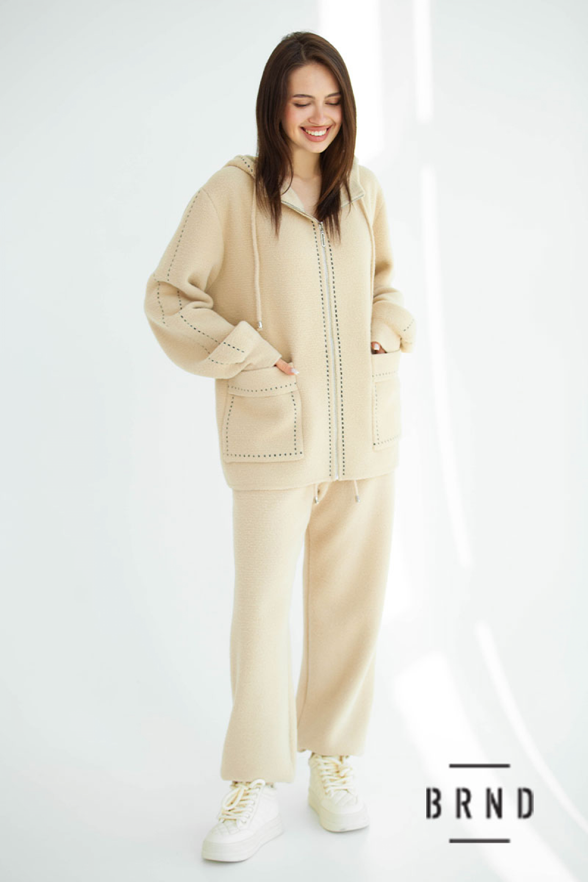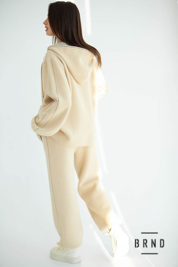 Костюм трикотажный: кофта прямого кроя, с капюшоном и накладными карманами, на молнии, брюки прямые , зауженные, с манжетами (Chloe)