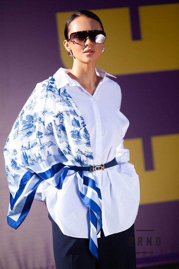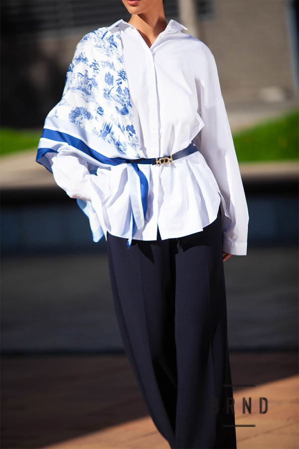 Рубашка прямого кроя с поясом, декор-съемный платок (Christian Dior)