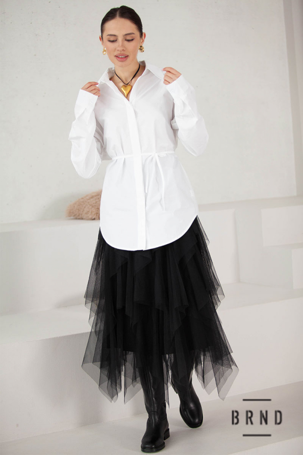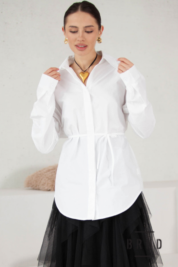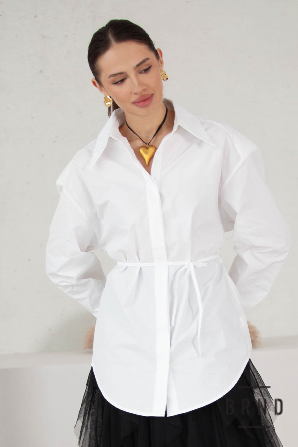 Рубашка прямого кроя с вшитым тонким текстильным поясом и фактурными плечами (Christian Dior)