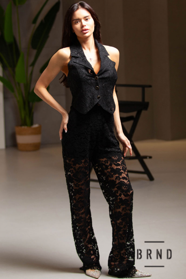 Костюм кружевной: жилет приталенного кроя с открытой спиной, застежка-пуговицы, брюки прямые (Dolce & Gabbana)