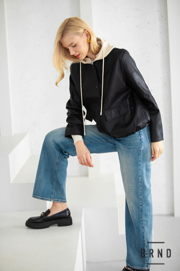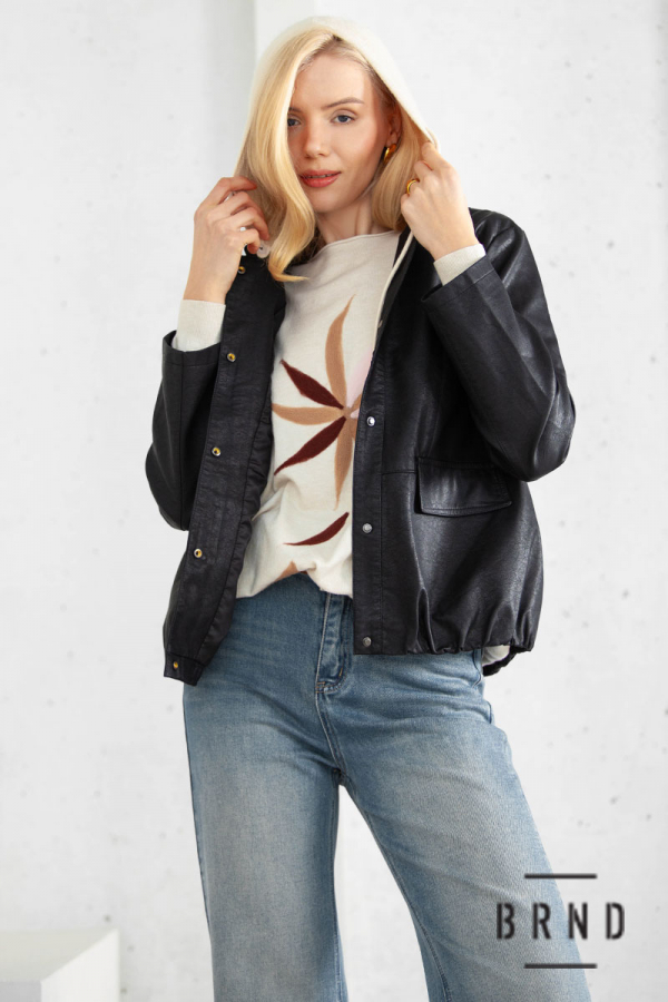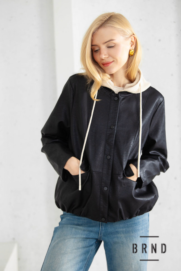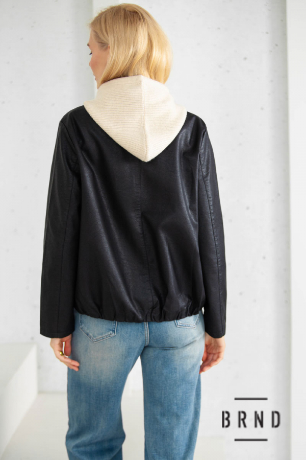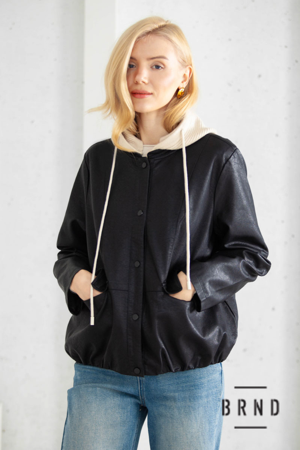 Куртка из экокожи свободного кроя, с трикотажным съемным капюшоном (Fendi)