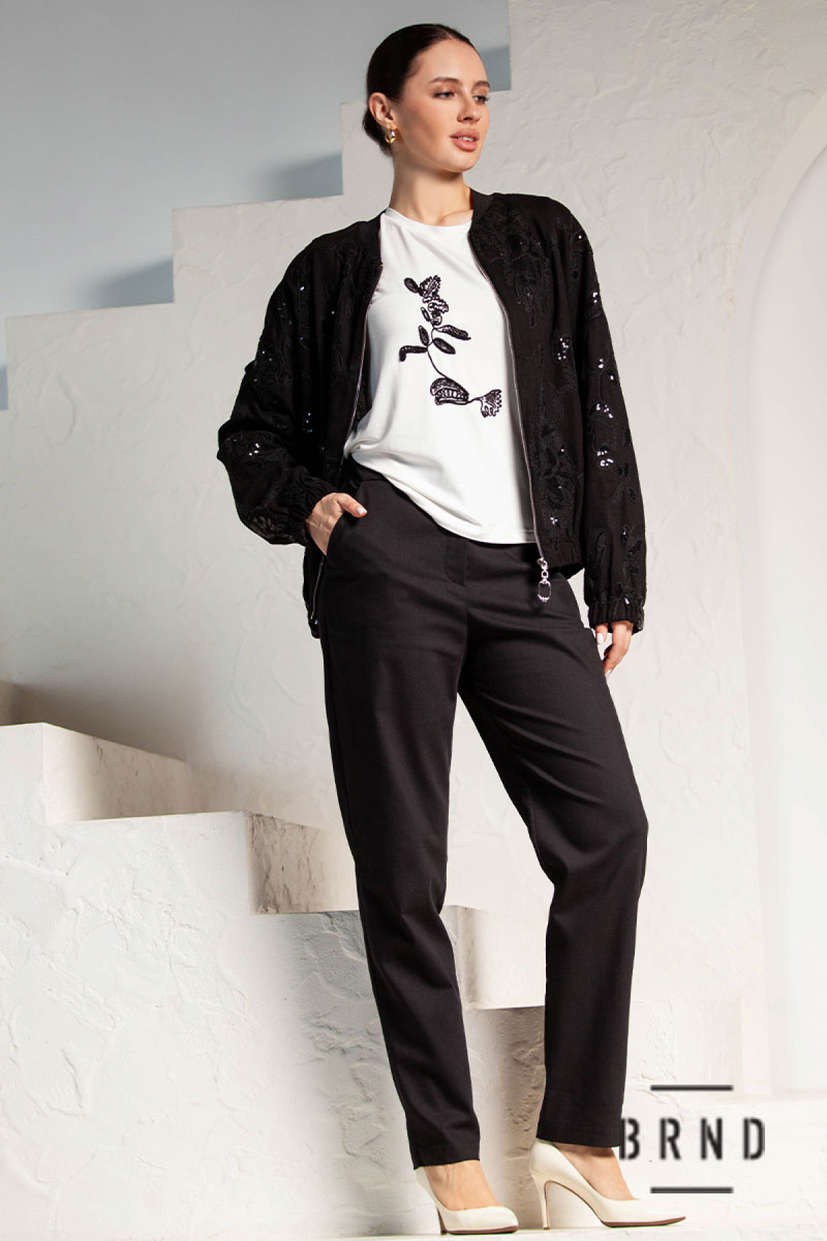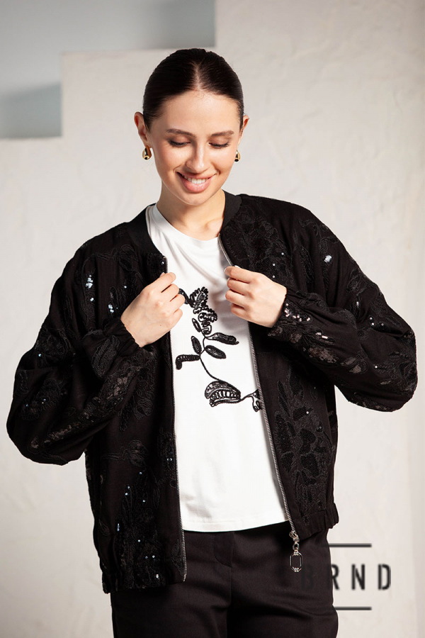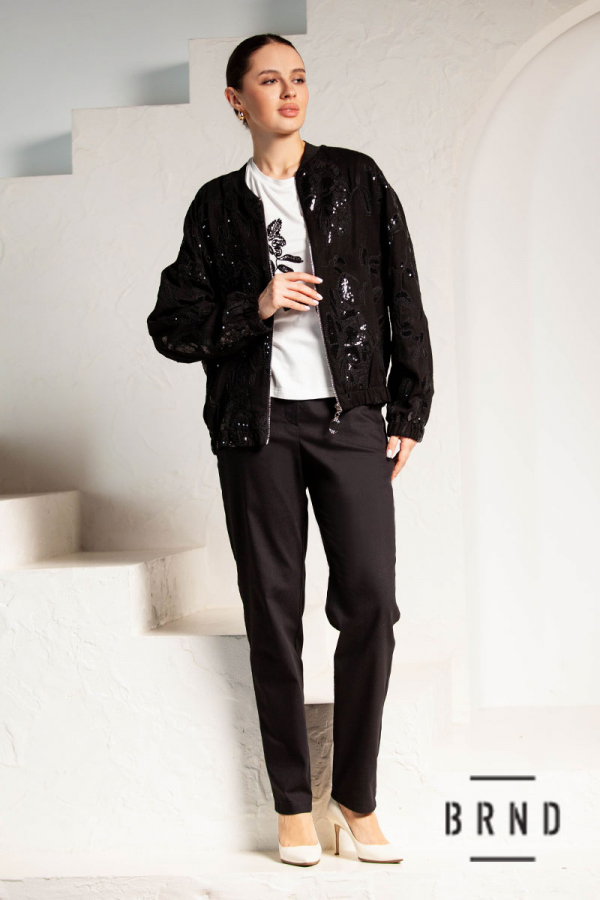 Состав: бомбер и брюки-лен 100%; футболка-хлопок 65%, спандекс 35%