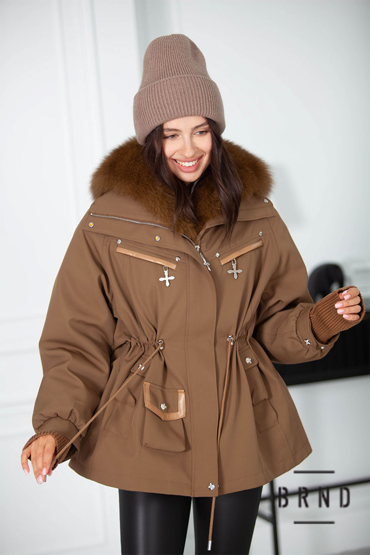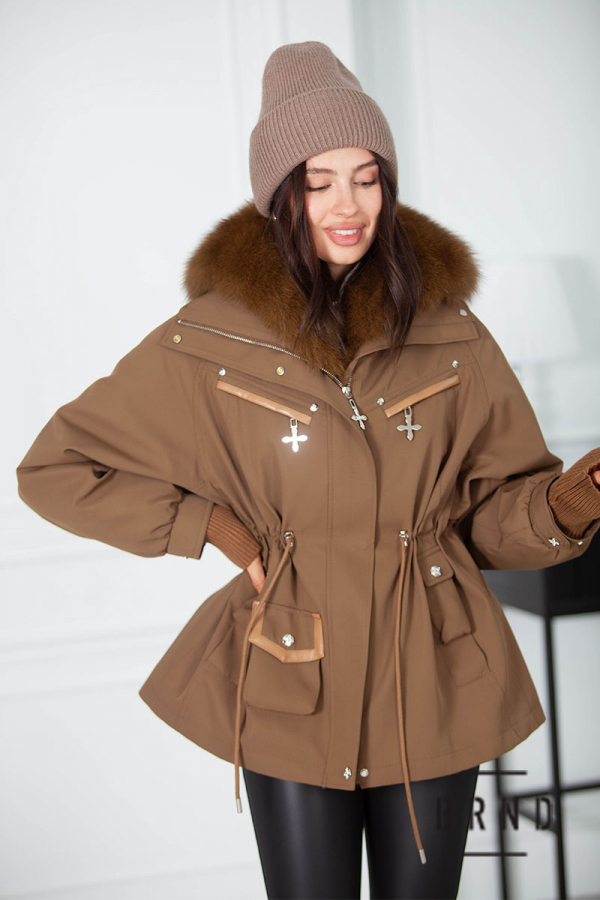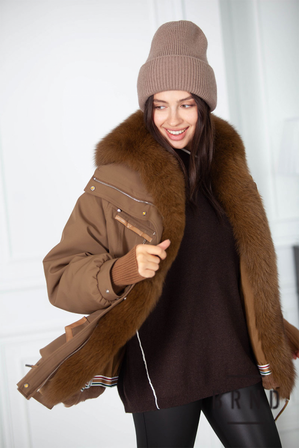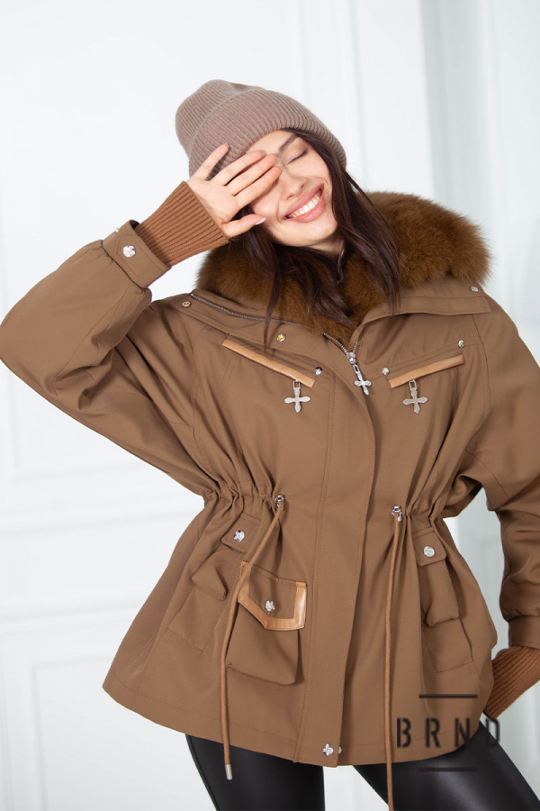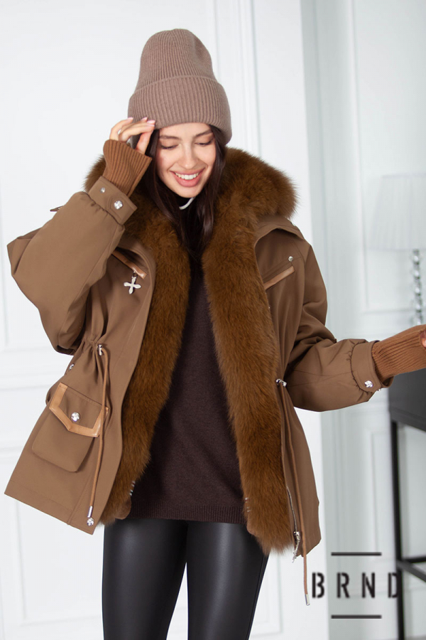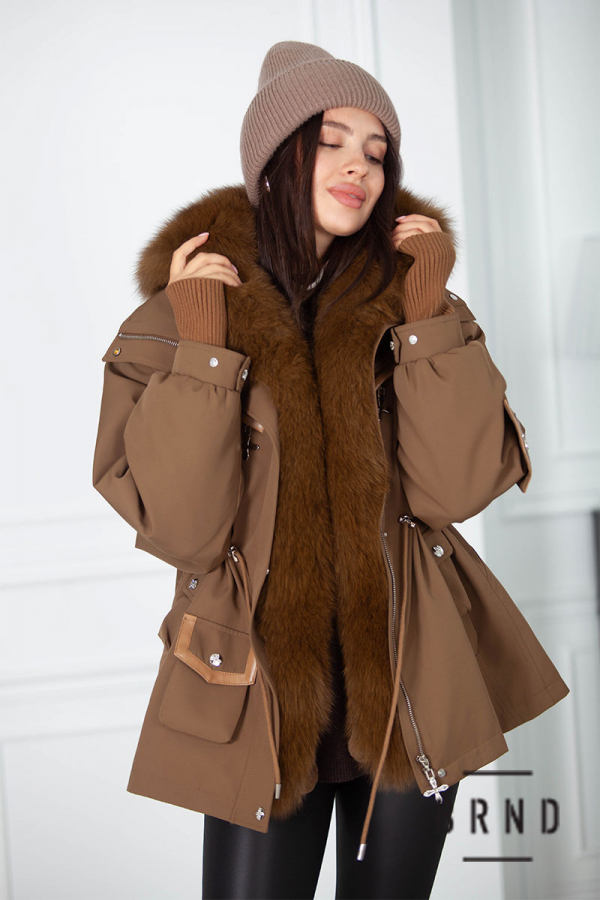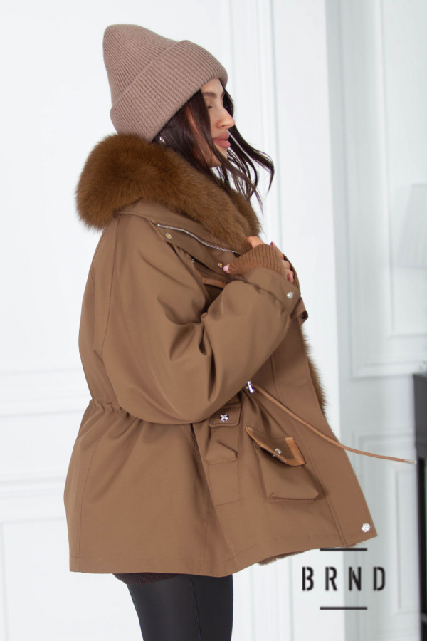 Парка демисезонная, прямого кроя со съемной подстежкой из искусственного меха с трикотажными манжетами, пояс-регулируемый шнур, отделка-мех песца (Louis Vuitton)