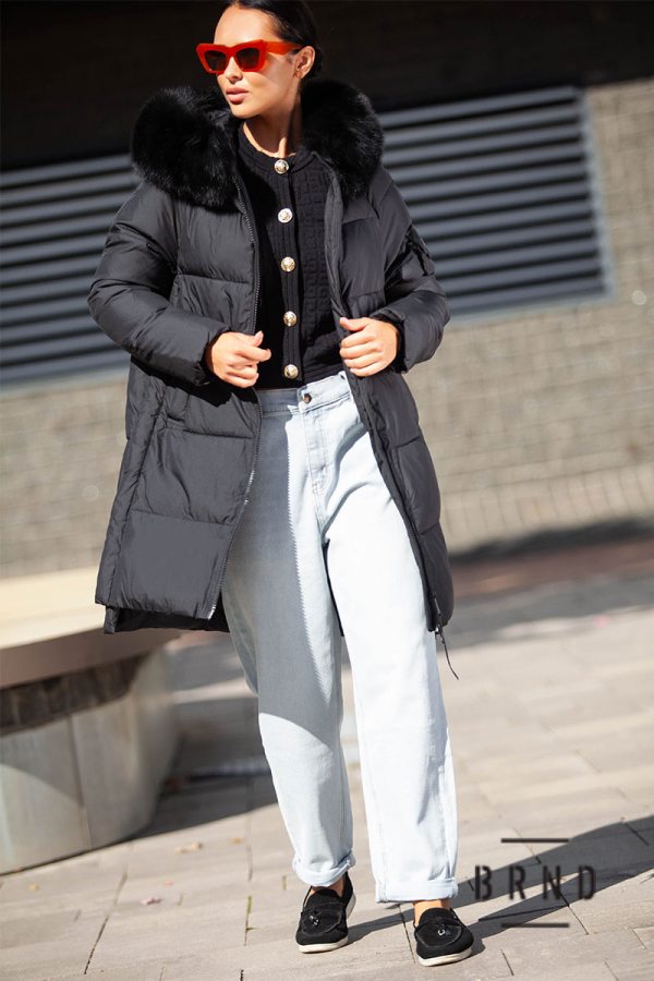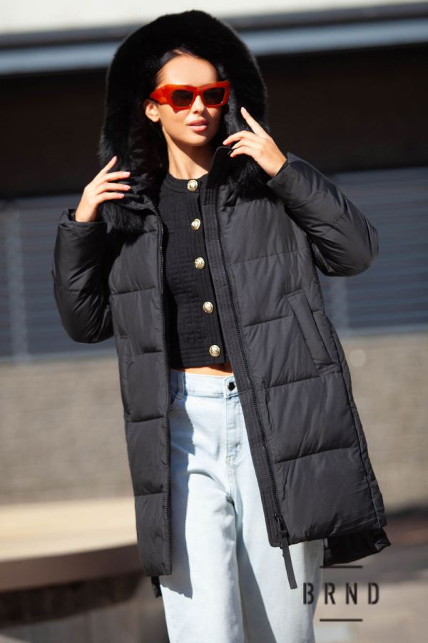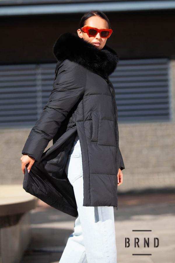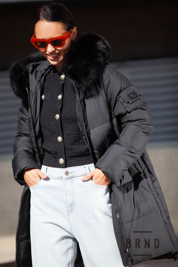 Куртка прямого кроя, с капюшоном со съемным мехом (Max Mara)