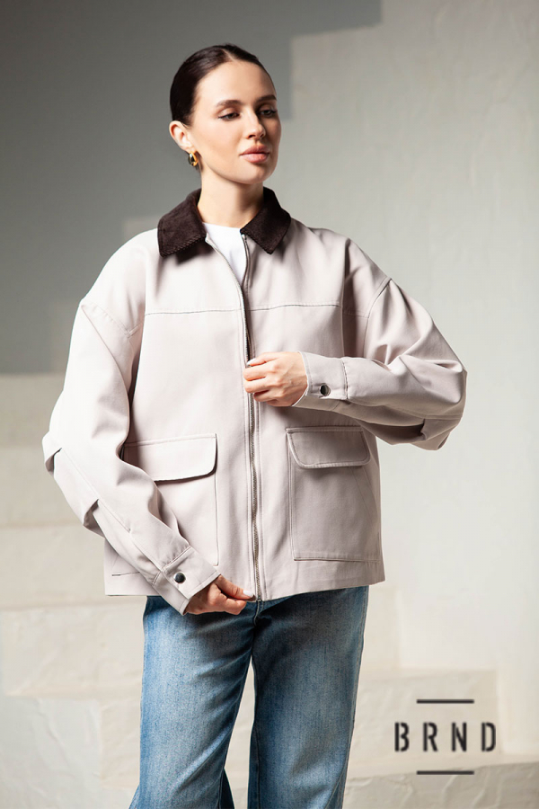 Куртка прямого кроя, с вельветовым воротником и накладными карманами (Miu Miu)