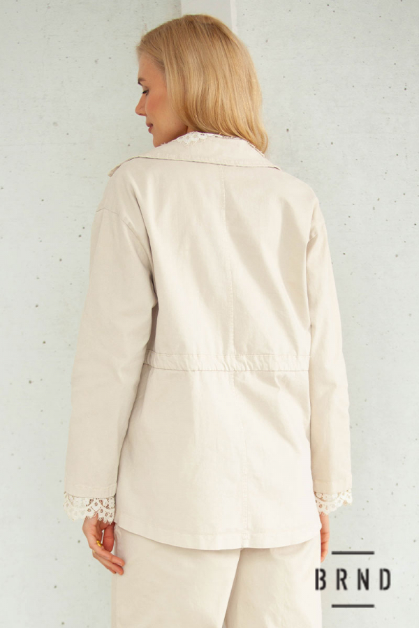 Жакет прямого кроя, без застежки, пояс-лента, декор-кружево (Moschino)