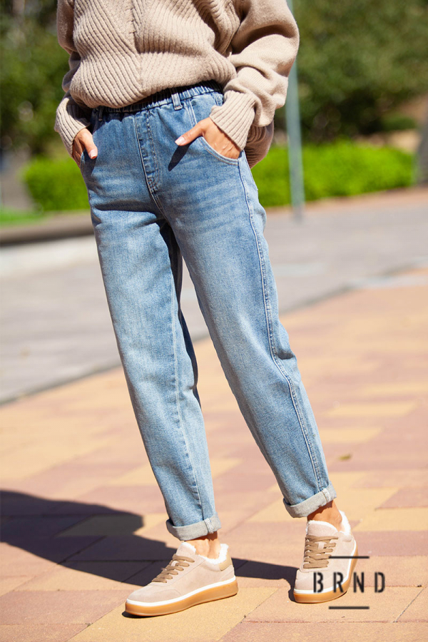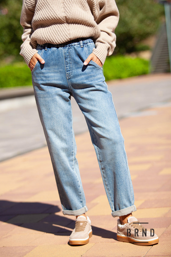 Джинсы зауженные, пояс-резинка, посадка высокая (Other Brand)