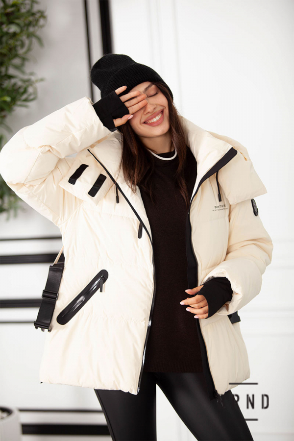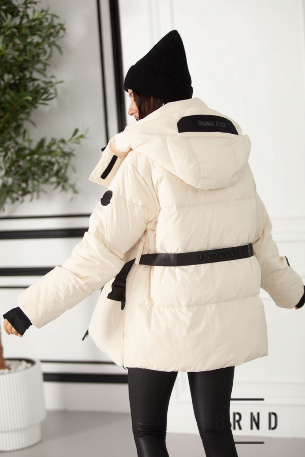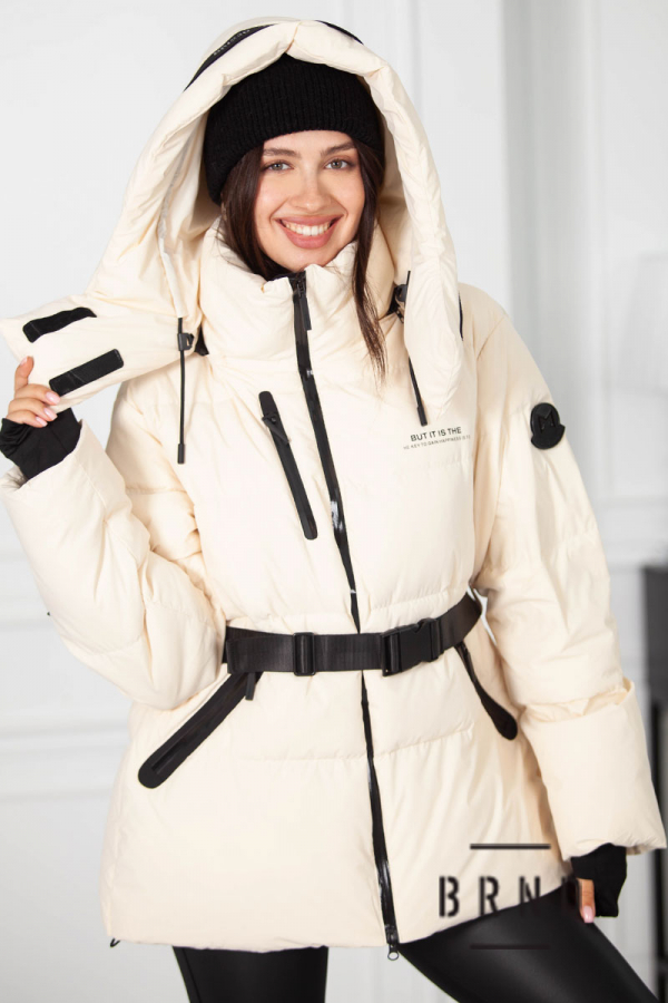 Куртка прямого кроя, с капюшоном, поясом и карманами, ворот-стойка (Other Brand)