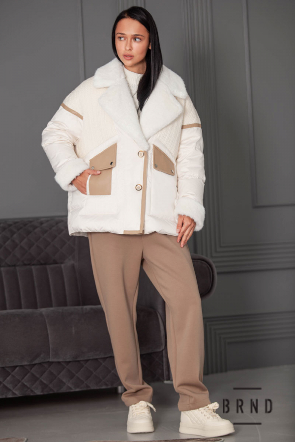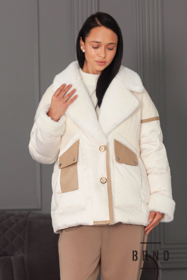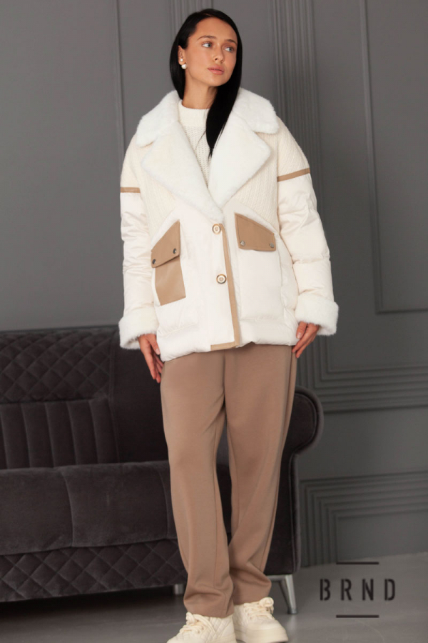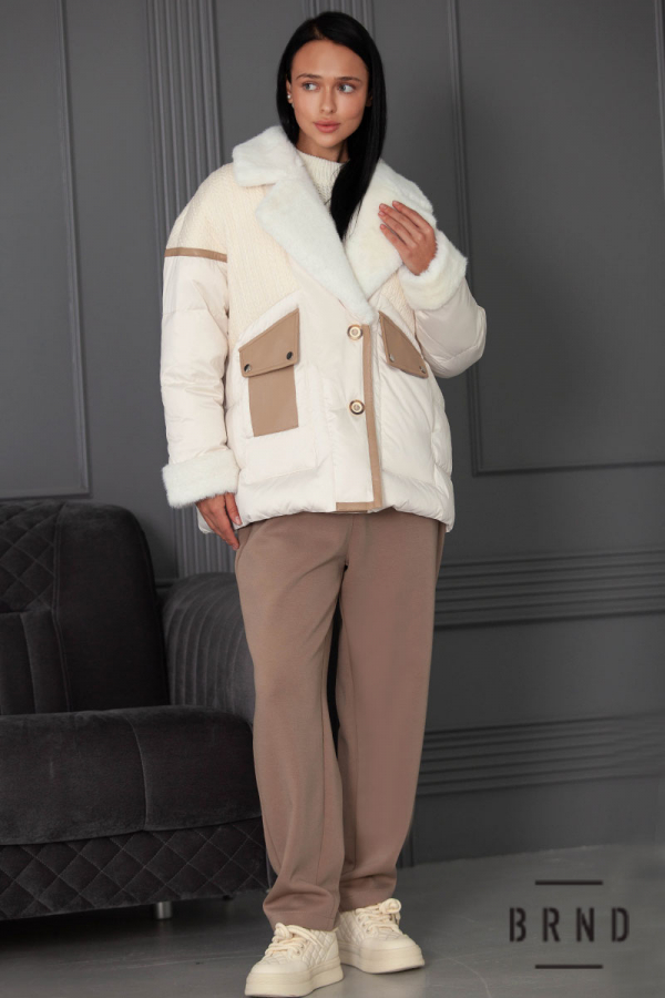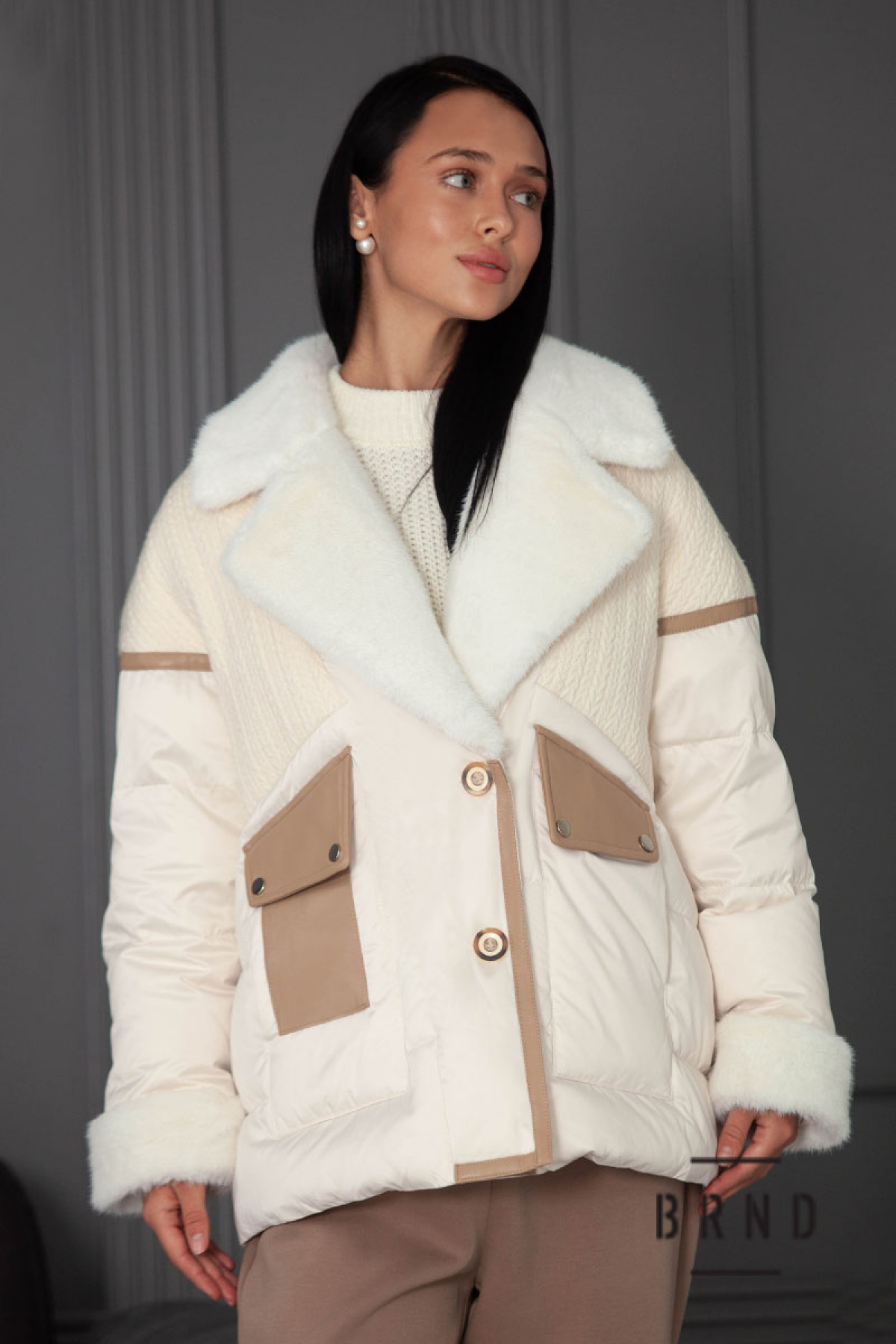 Куртка свободного кроя, комбинирована с трикотажем; декор на воротнике и лацканах - искусственный мех (Other Brand)