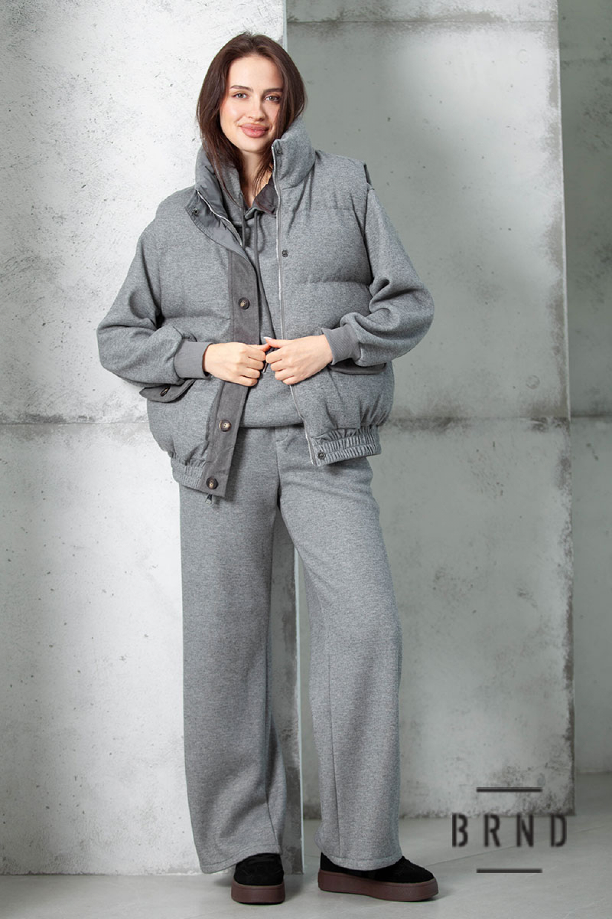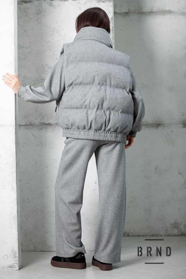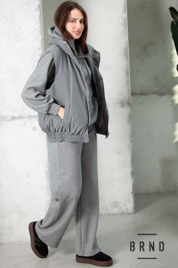 Костюм-тройка: жилет двусторонний, прямого кроя, воротник-стойка,; худи свободного кроя; штаны прямые, широкие, посадка высокая (Other Brand)
