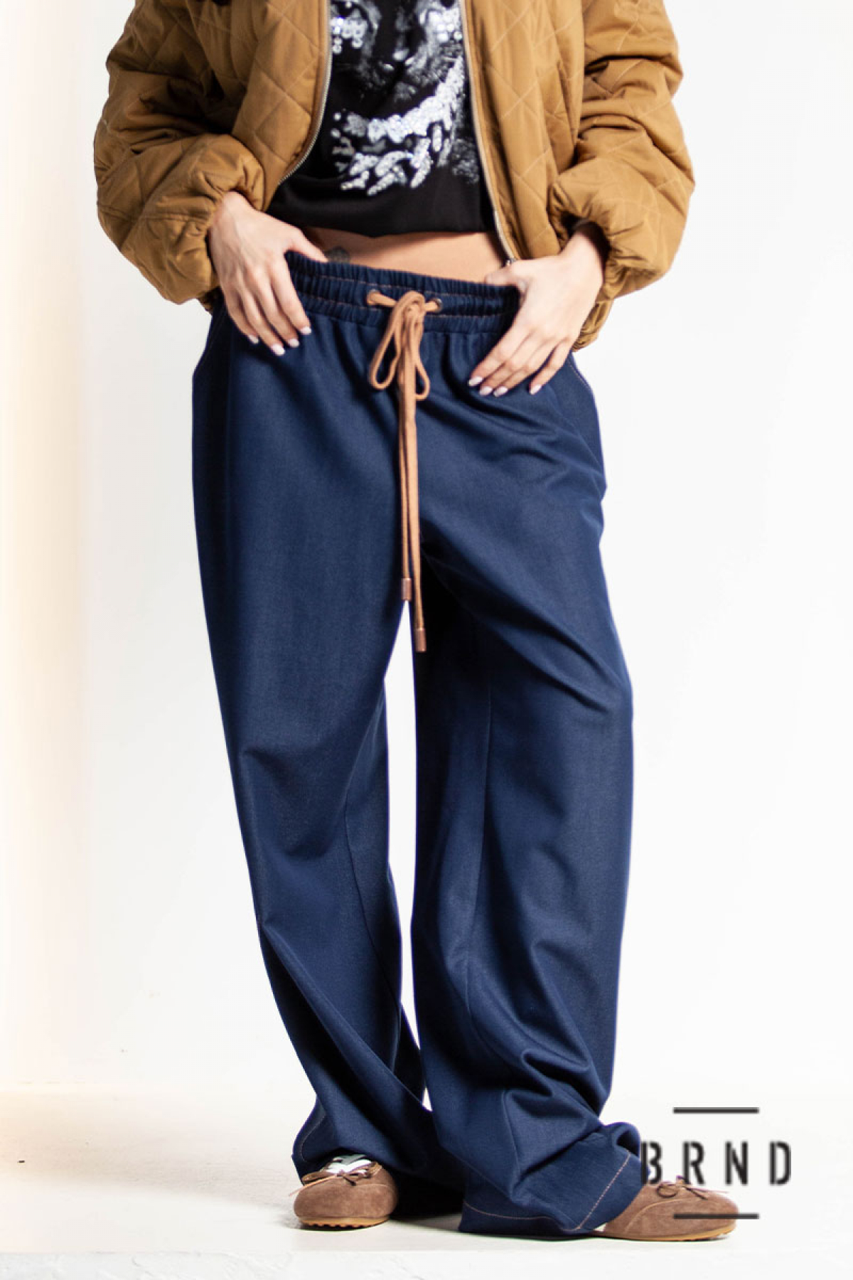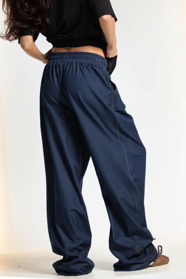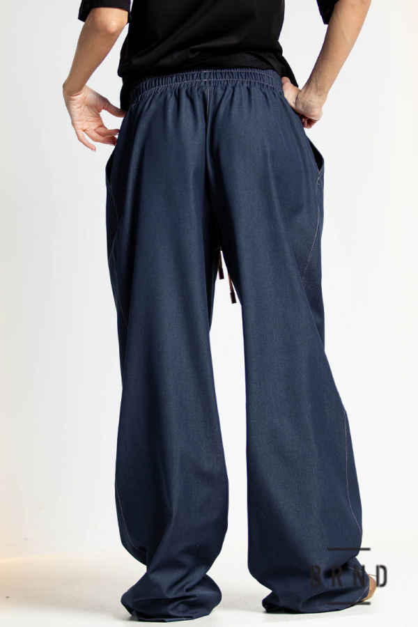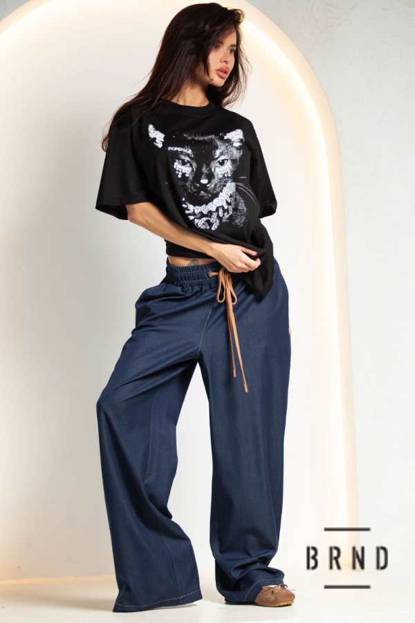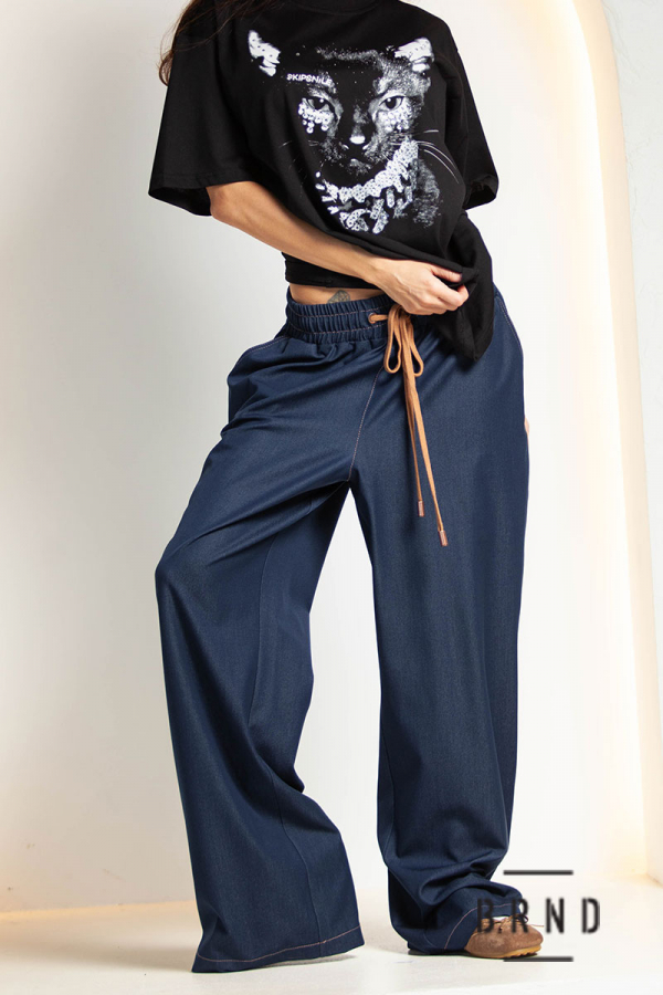 Брюки из тонкого денима, прямые, широкие, с косыми карманами, пояс-резинка и шнур, посадка высокая (Other Brand)
