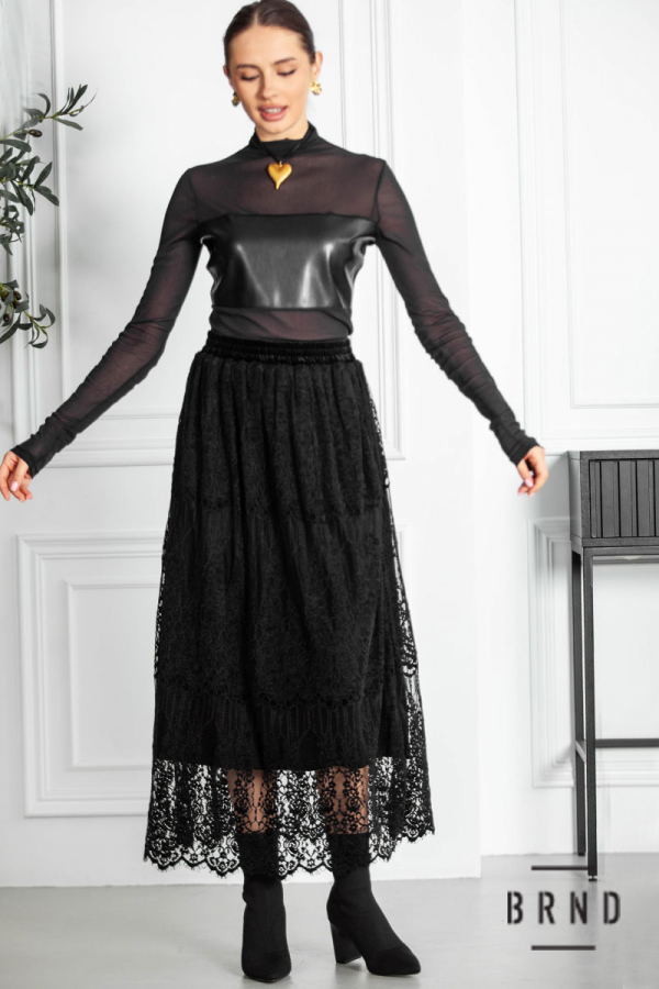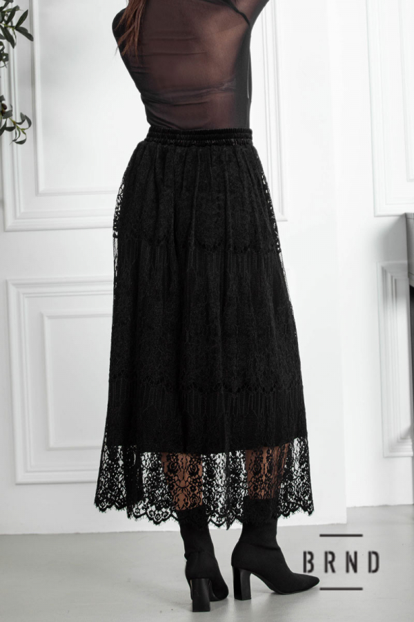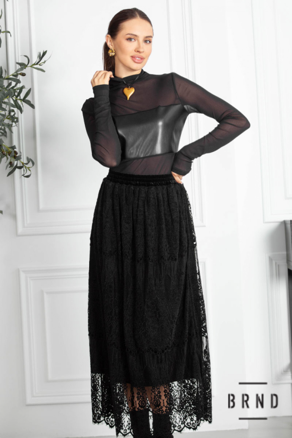 Юбка бархатная, комбинированная с кружевом, крой А-образный, пояс-резинка (Roberto Cavalli)