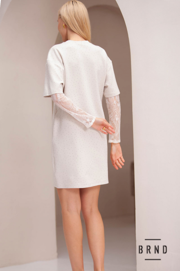 Платье прямого кроя с кружевными рукавами и карманами, декор-стразы (Salvatore Ferragamo)