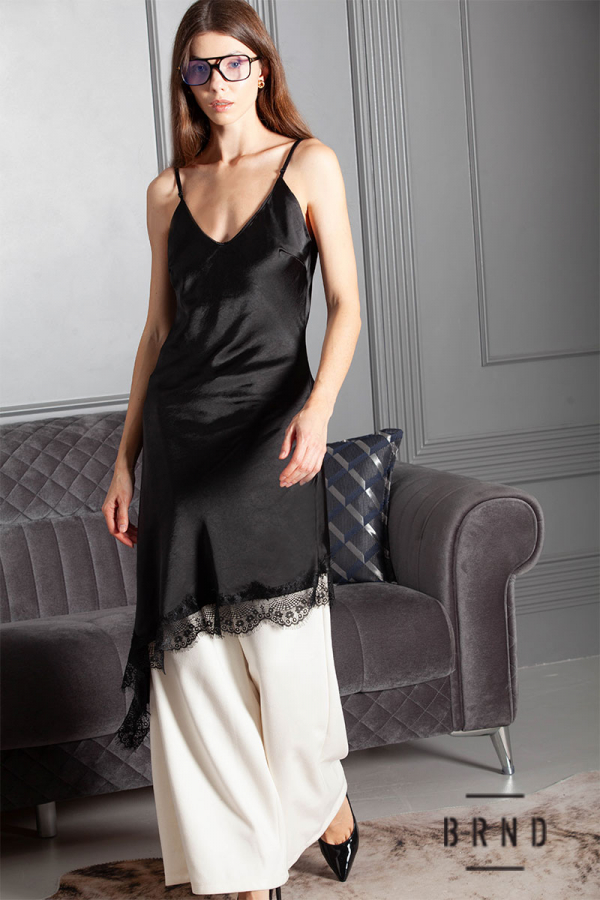 Платье-комбинация асимметричное, А-образного кроя, отделка-кружево (Valentino)
