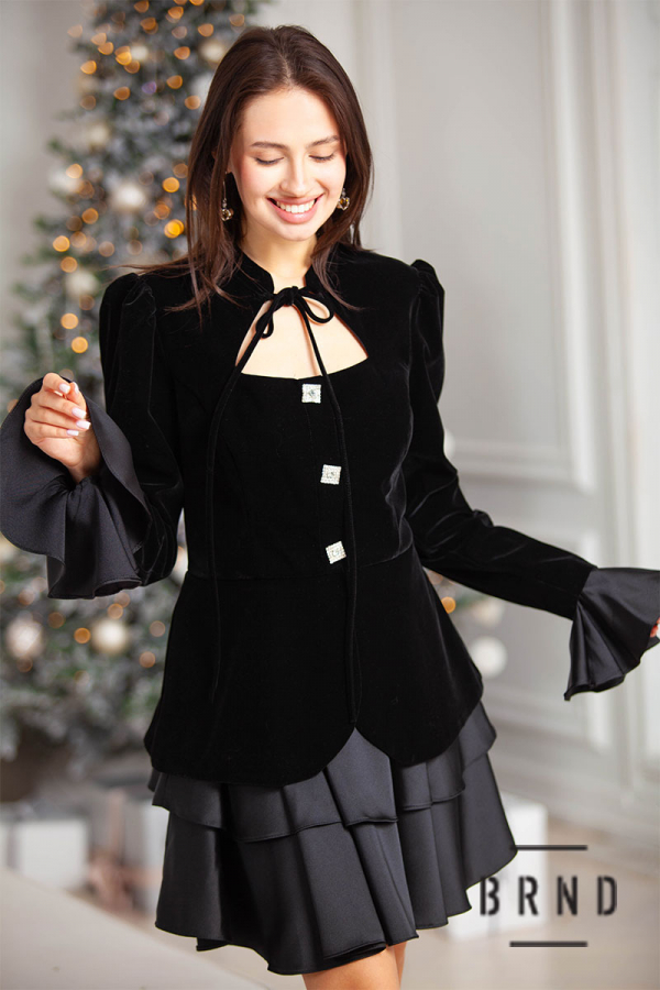 Платье приталенного кроя, комбинированное с бархатом, декор-пуговицы с камнями (Valentino)