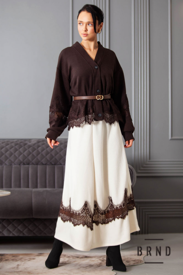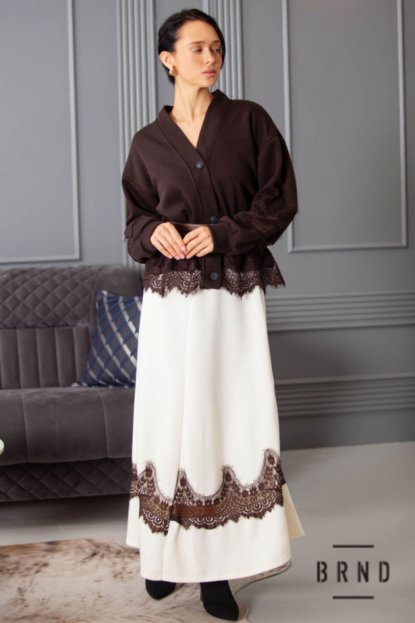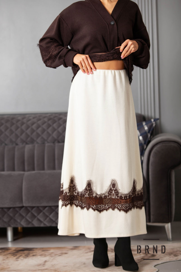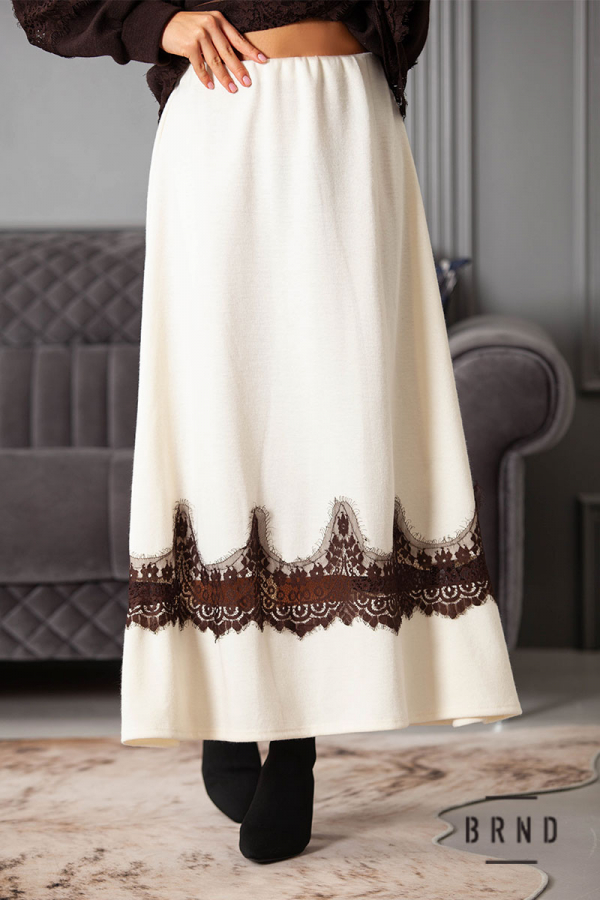 Спідниця трикотажна А-подібного крою, пасок-гумова стрічка, оздоблення-мереживо (Salvatore Ferragamo)