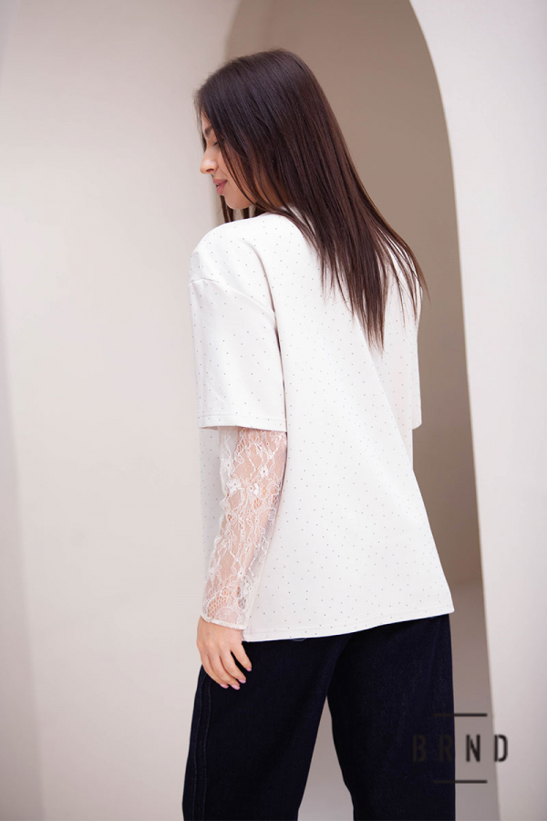 Кофта прямого крою з мереживними рукавами та кишенями, оздоблення-стрази (Salvatore Ferragamo)