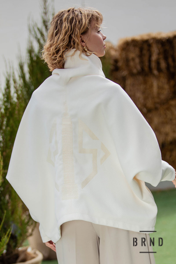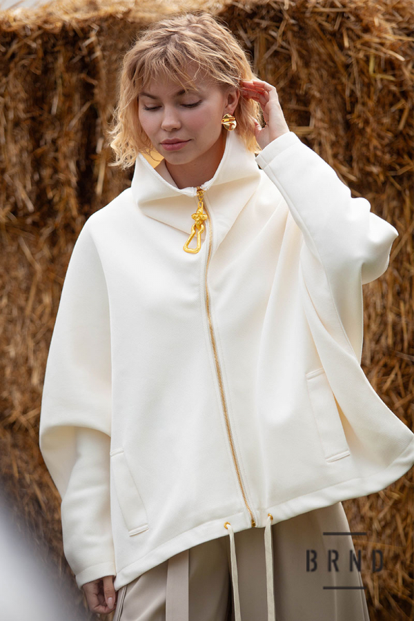 Куртка асиметричного крою на блискавці, з високим коміром, кишенями, та регульованим шнуром по низу виробу, рукав-летюча миша, декор-вишивка (Schiaparelli)