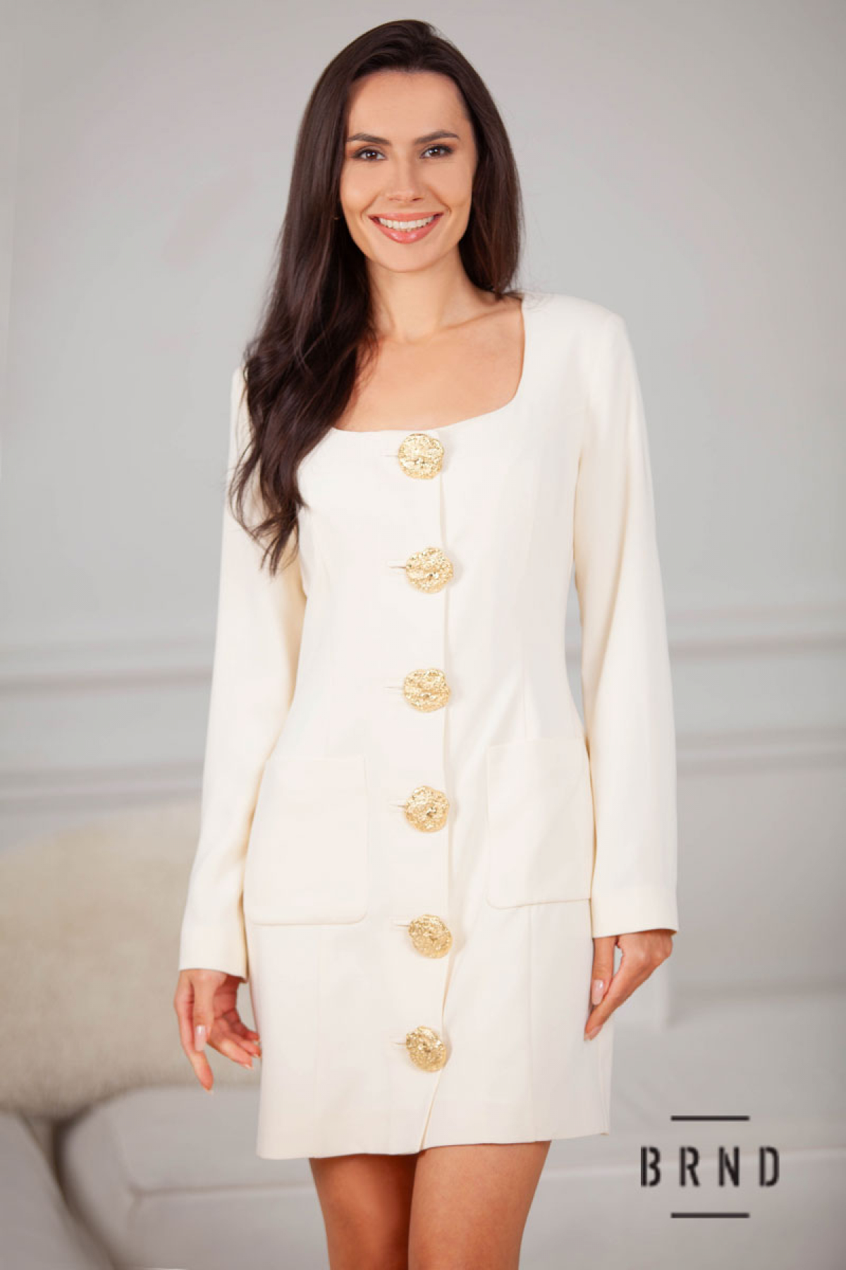 Сукня приталеного крою з глибоким декольте та накладними кишенями (Valentino)