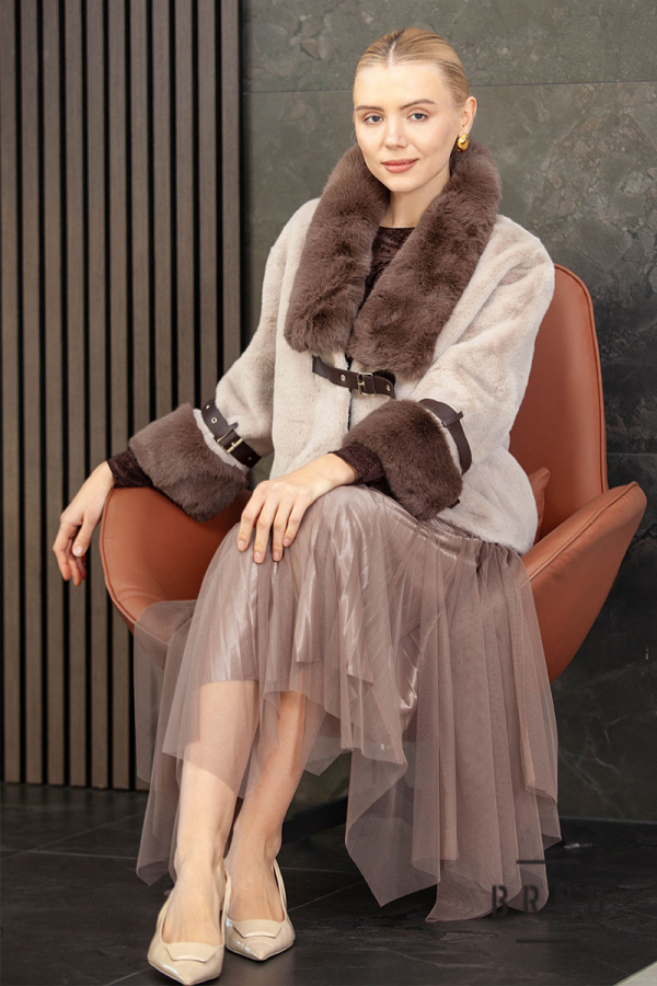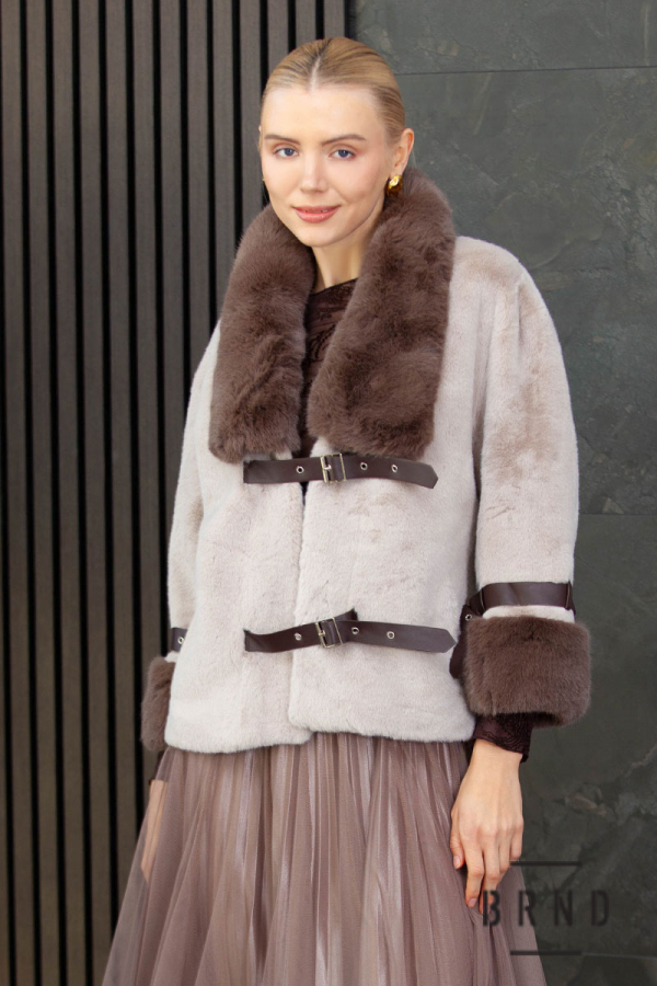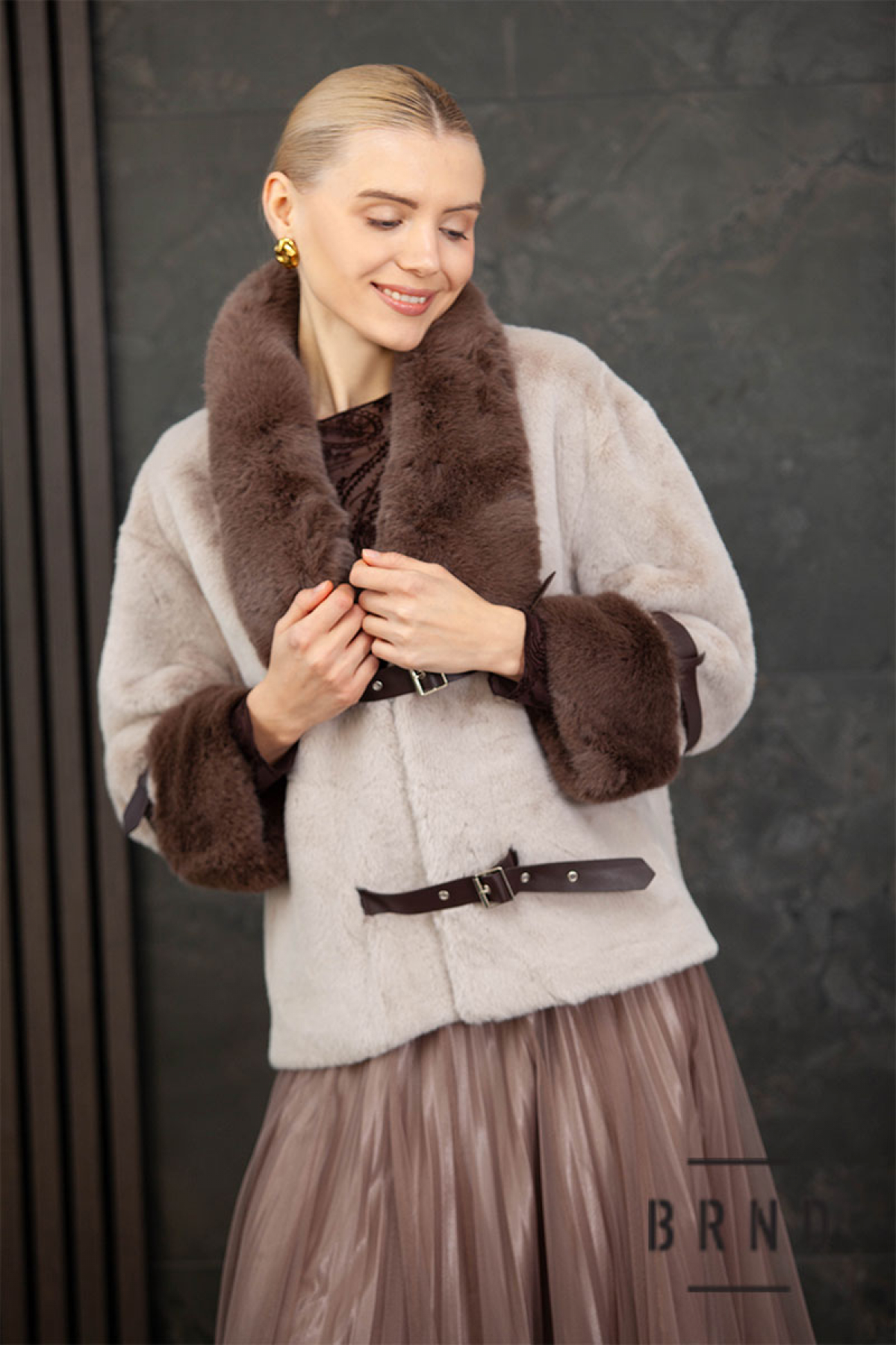 Кожушок з екохутра, вільного крою, з шалевим коміром, рукава 3/4, застібка-ремінці (Versace)