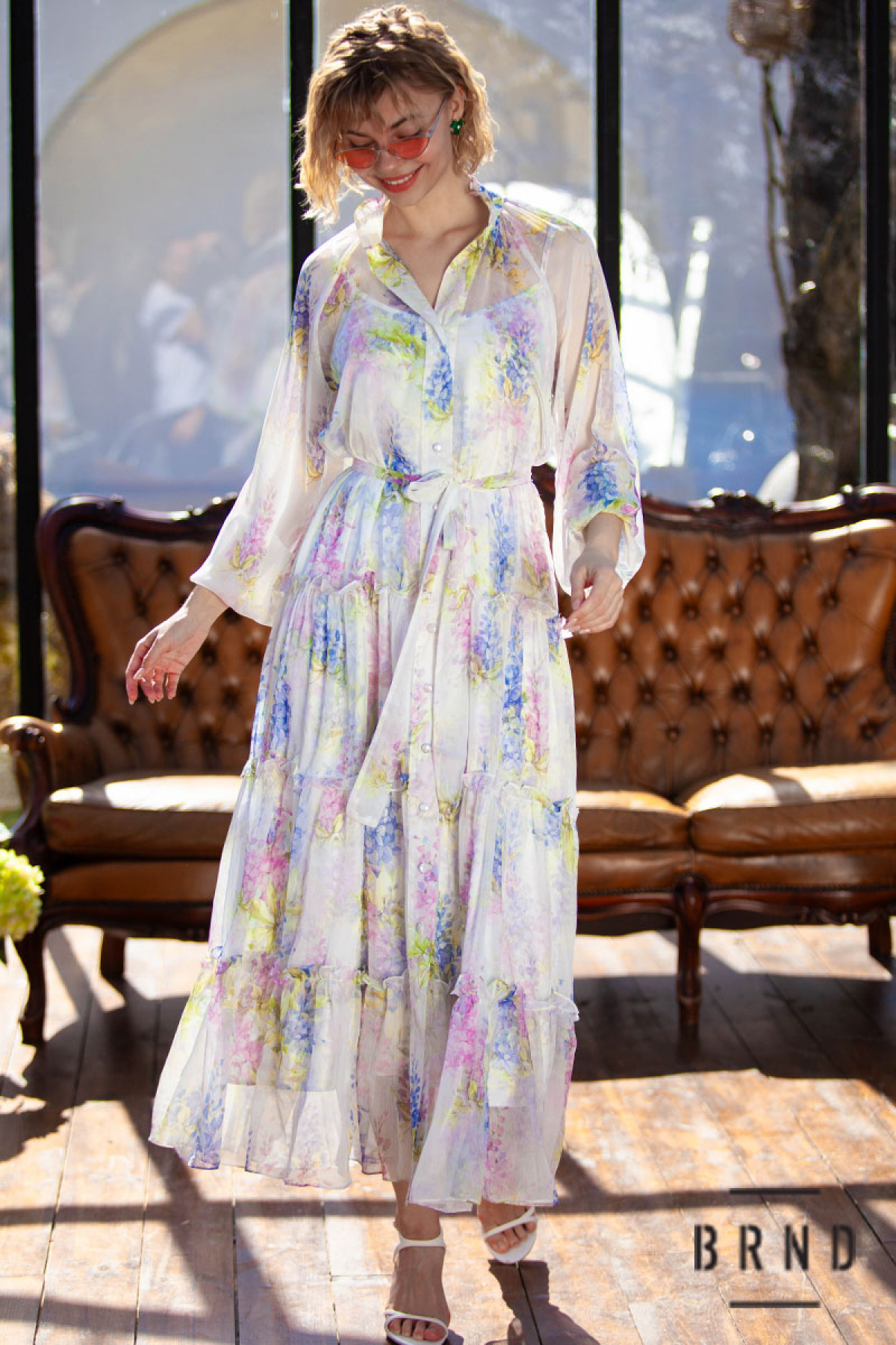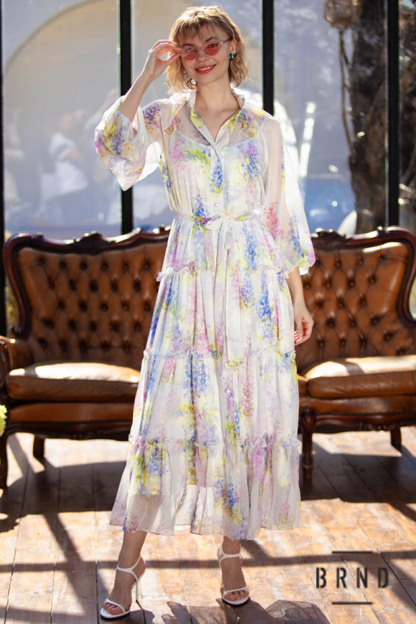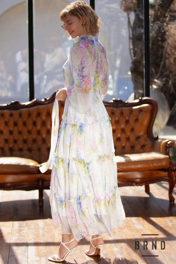 Сукня А-подібного крою з паском та комбінацією, рукав-буф, комір-стійка (Zimmermann)