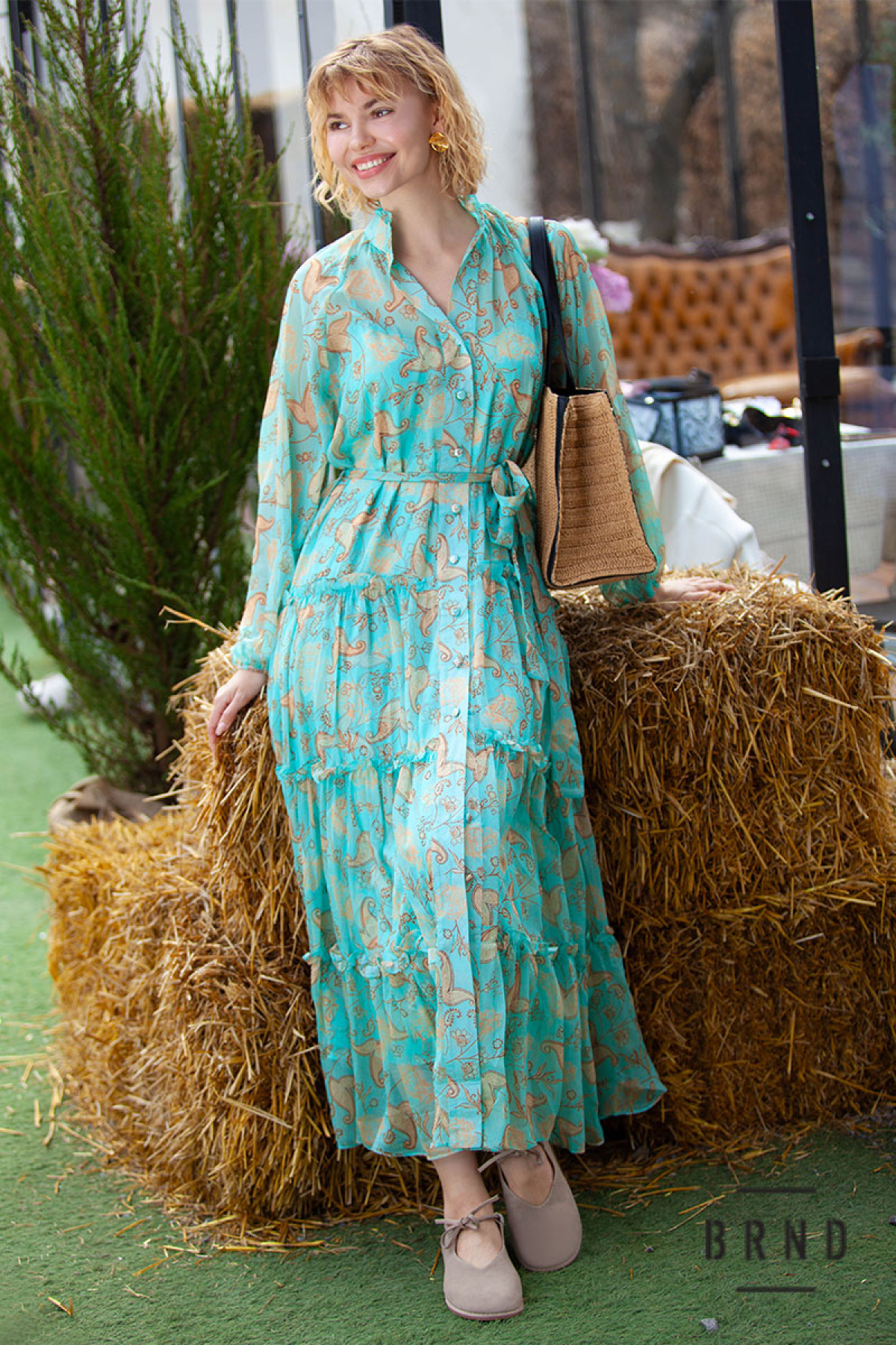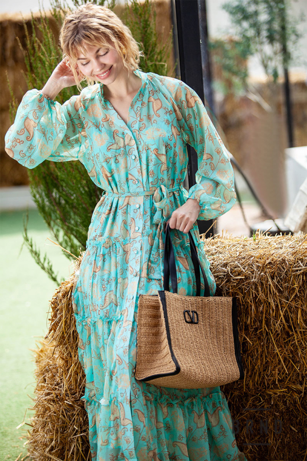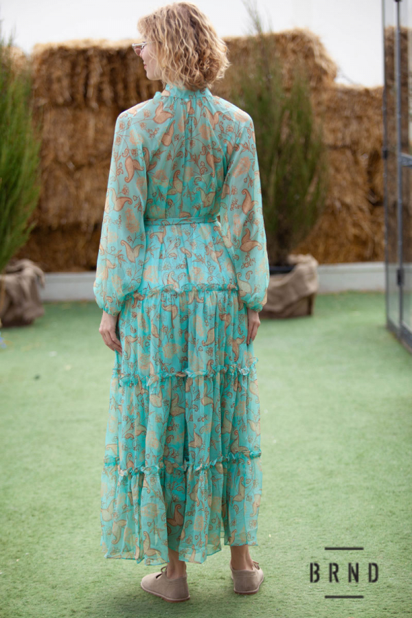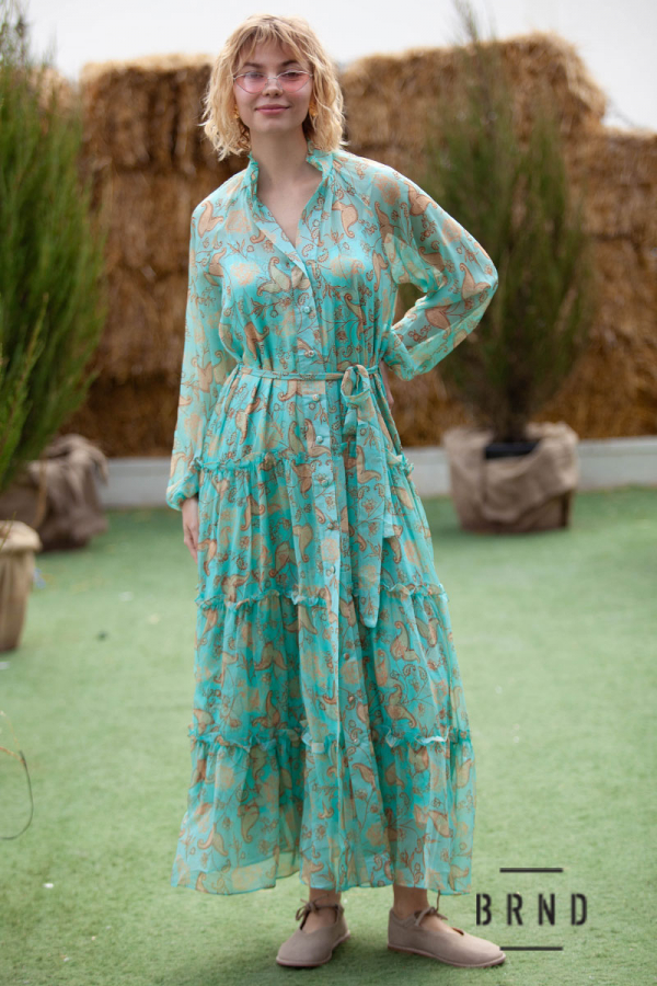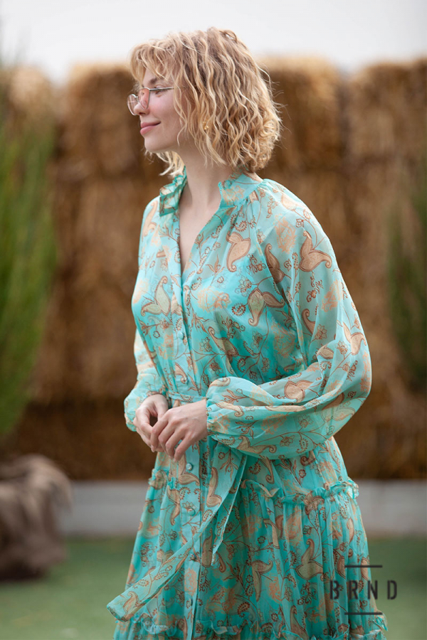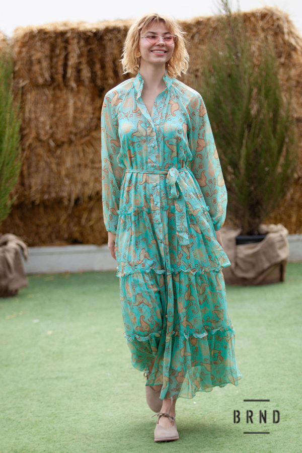 Сукня А-подібного крою з паском та комбінацією, рукав-буф, комір-стійка (Zimmermann)